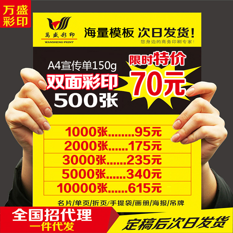 Wansheng カラー印刷広告 a4 チラシ 70% off ページマニュアルカラーページデザイン印刷 DM シングルページ生産小ロット