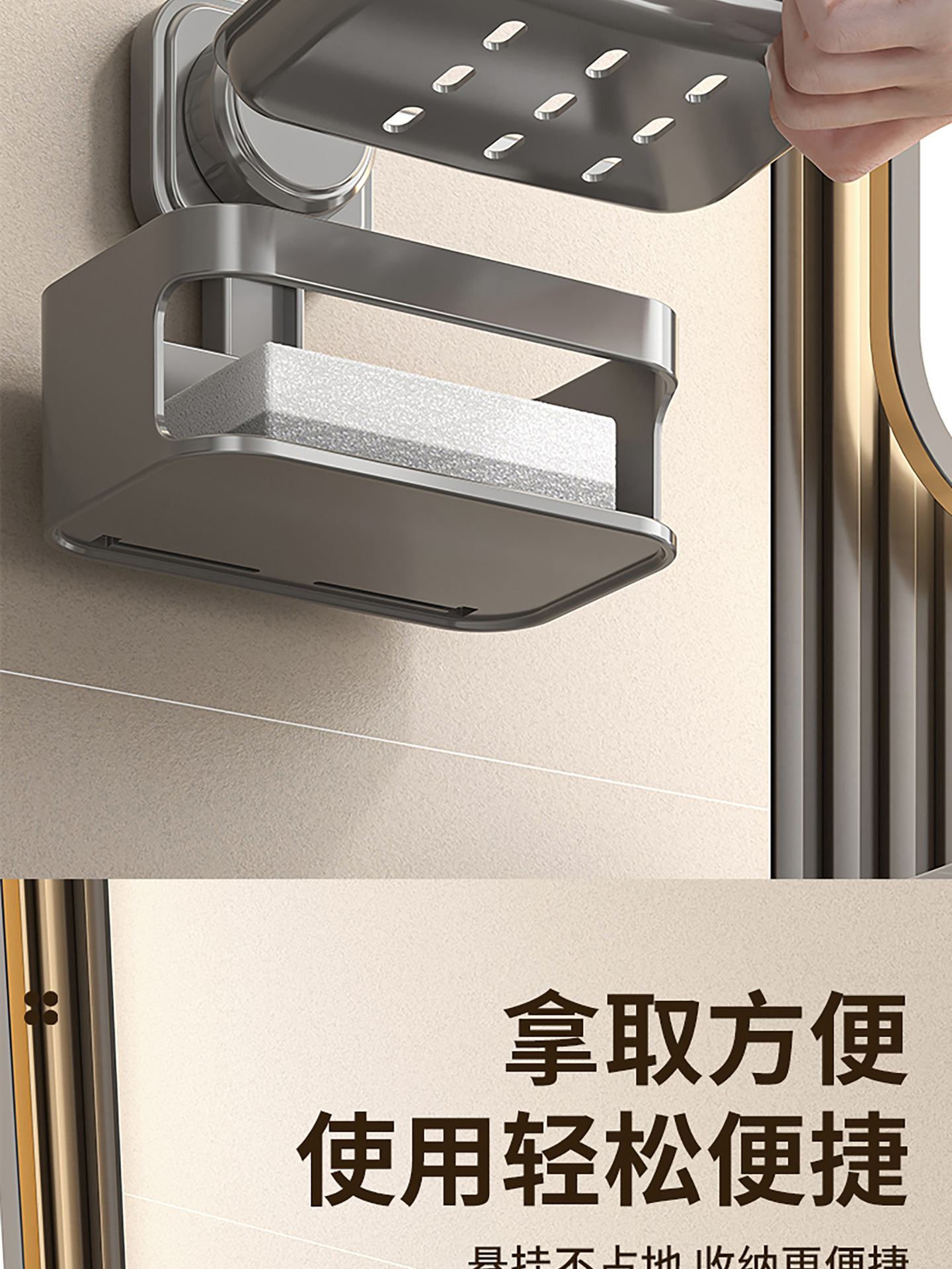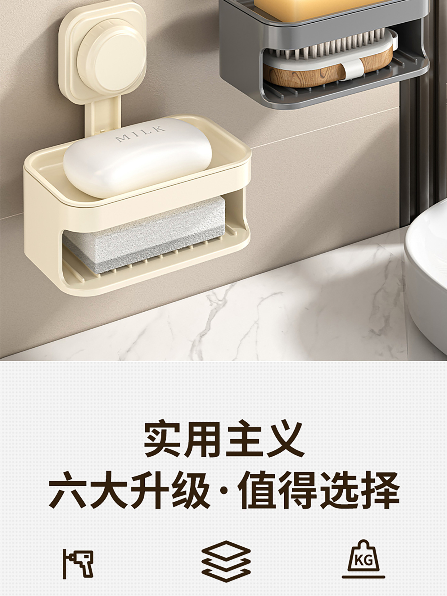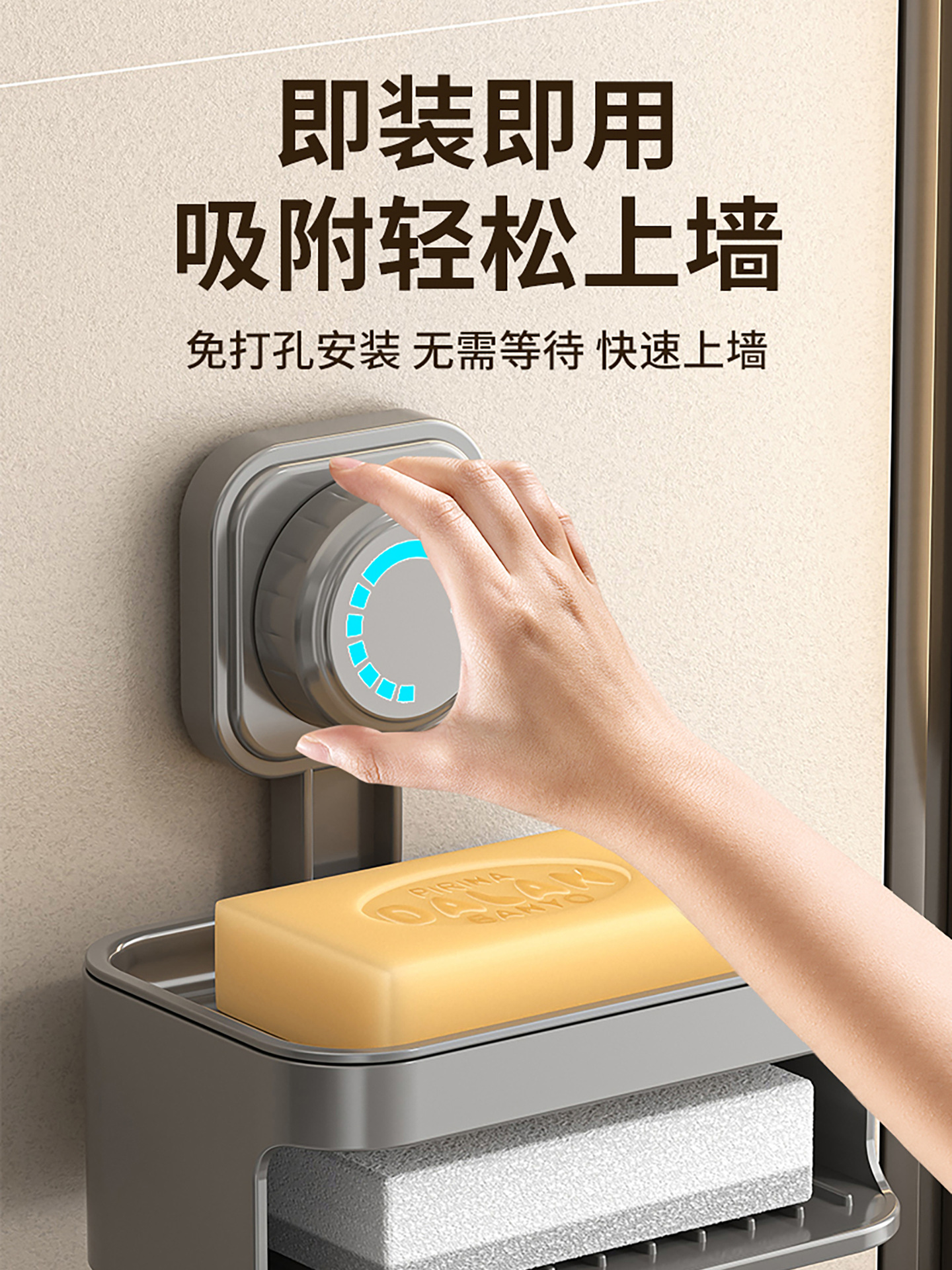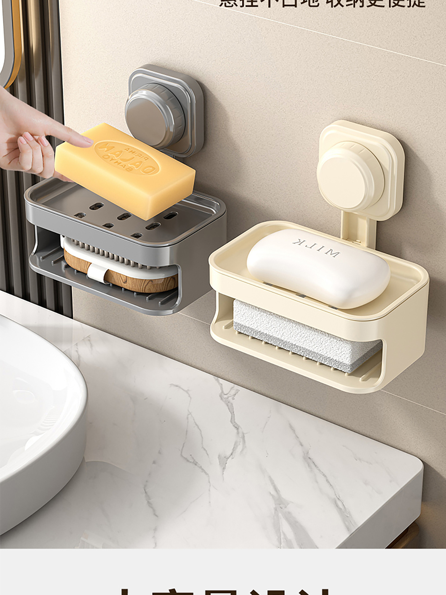 吸盘家用高档沥水肥皂架香皂盒浴室卫生间壁挂式双层免打孔肥皂盒