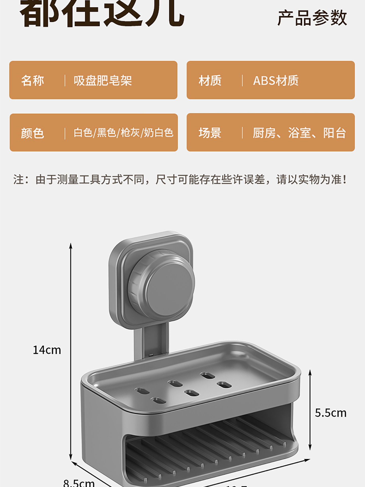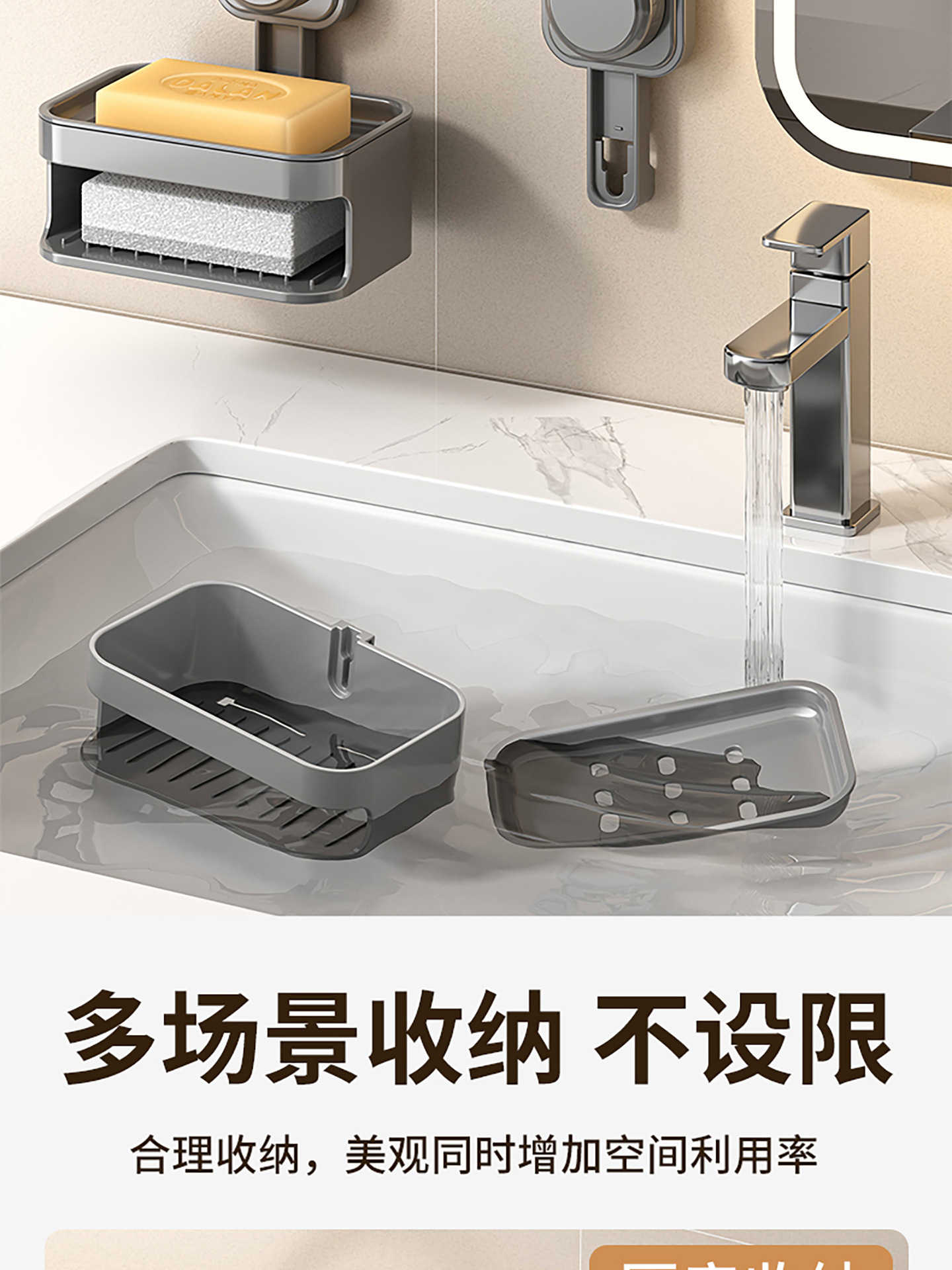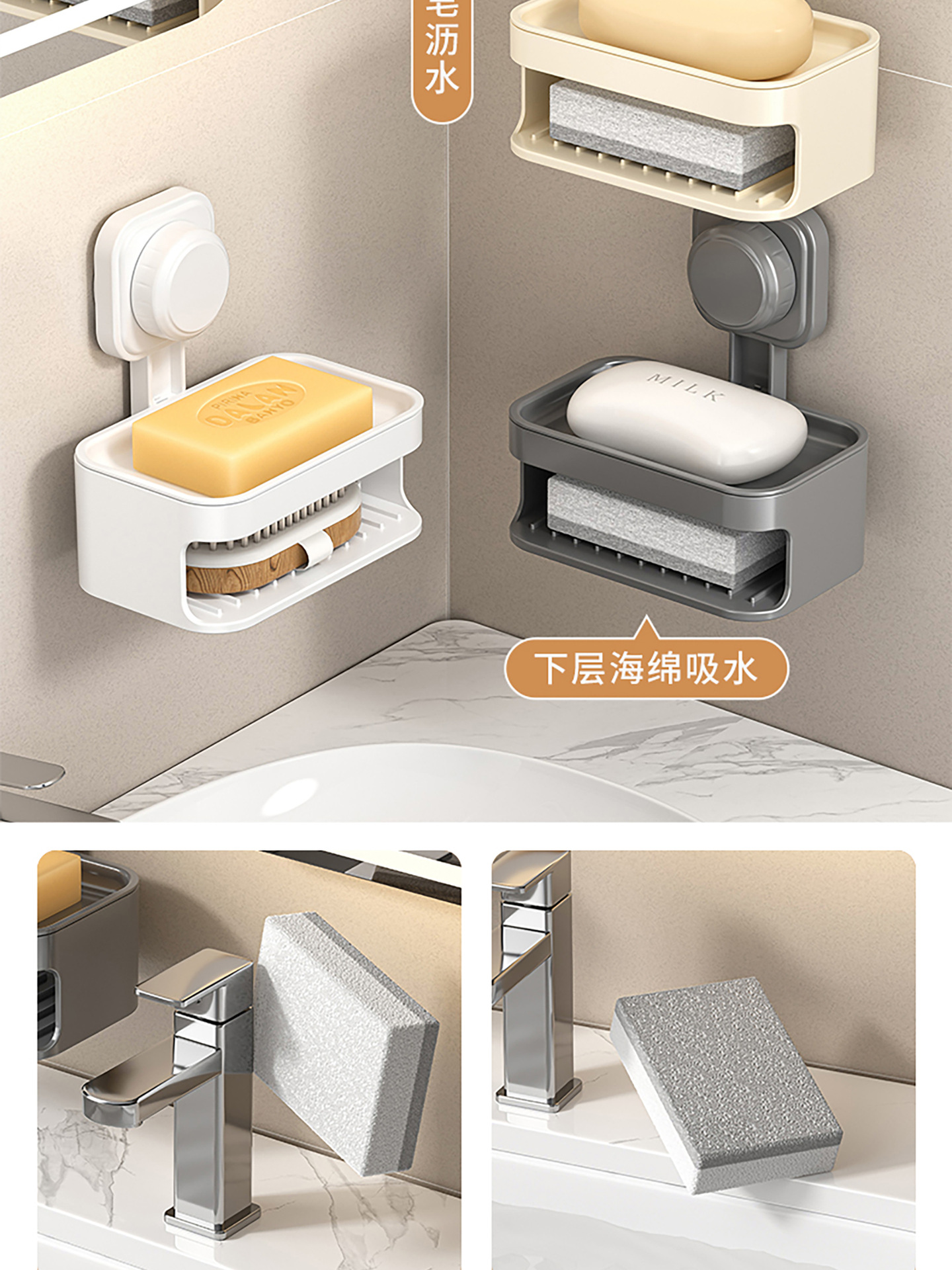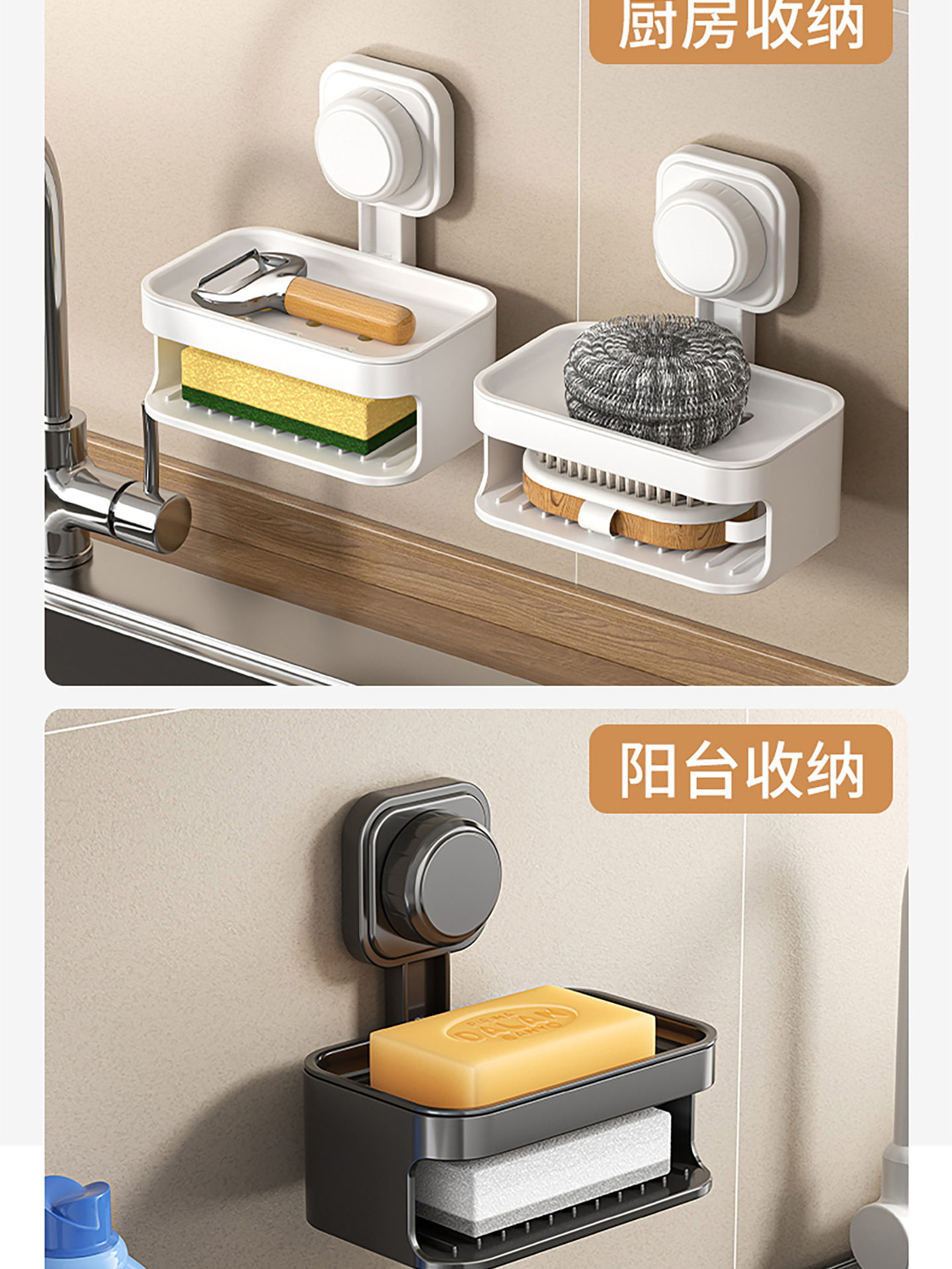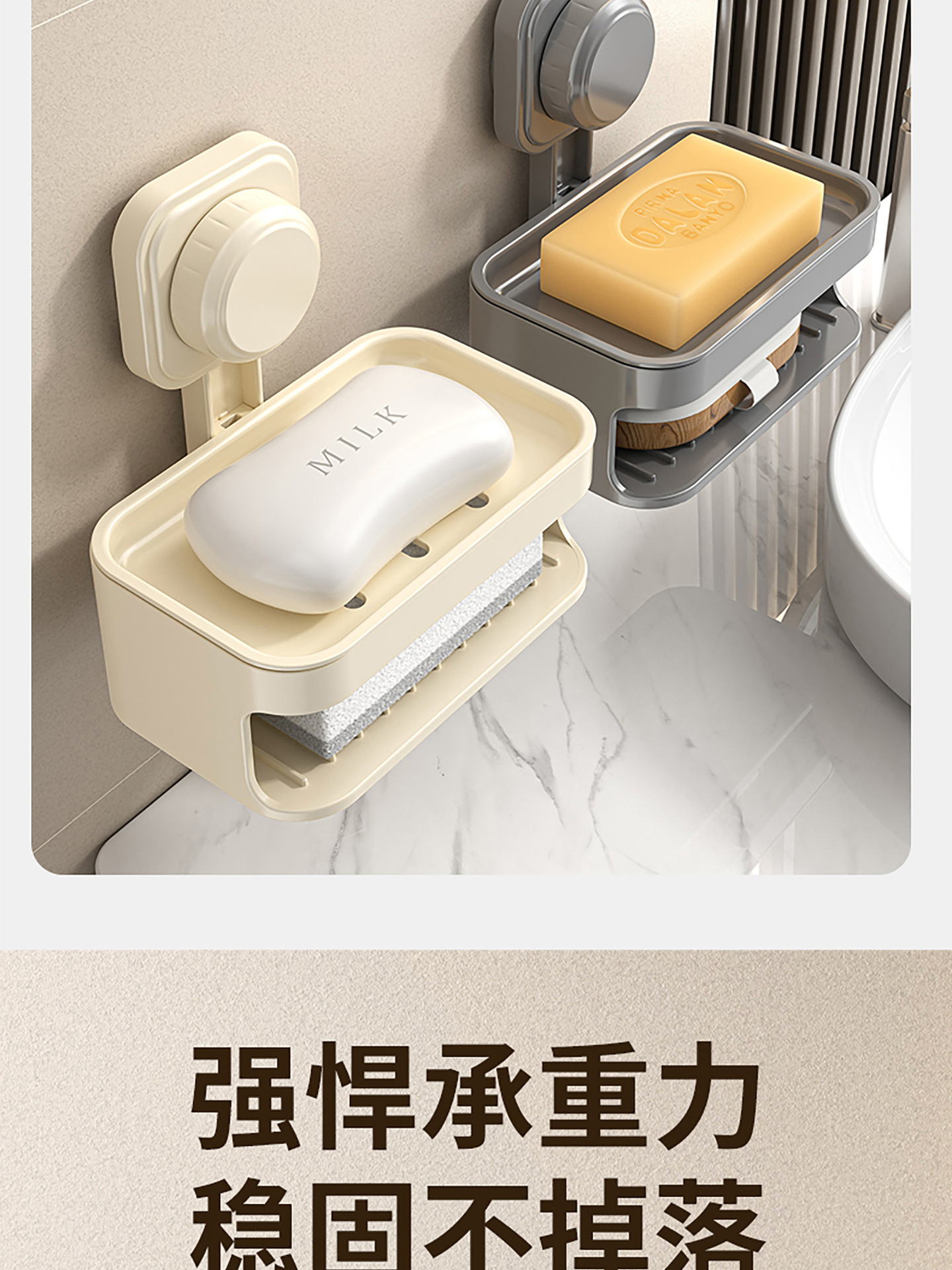 吸盘家用高档沥水肥皂架香皂盒浴室卫生间壁挂式双层免打孔肥皂盒