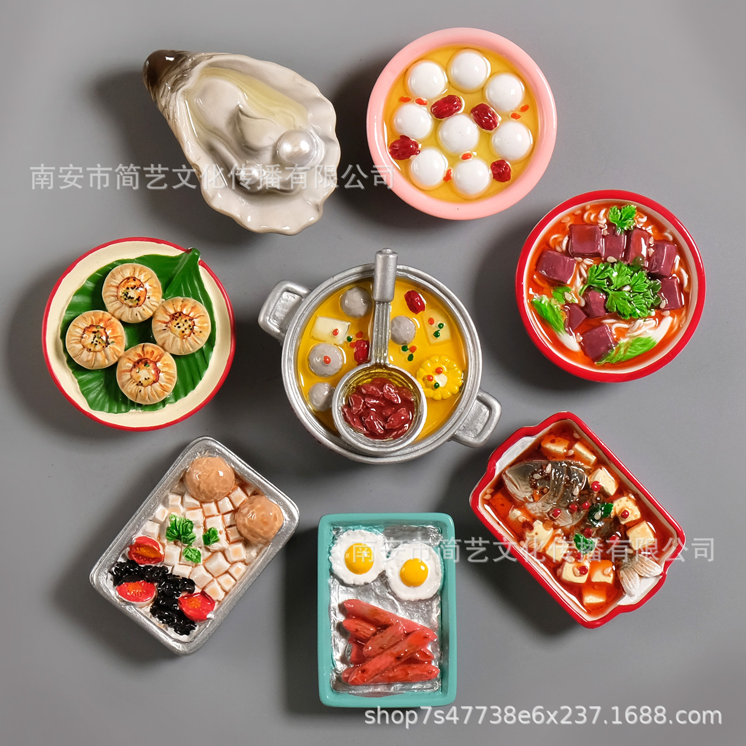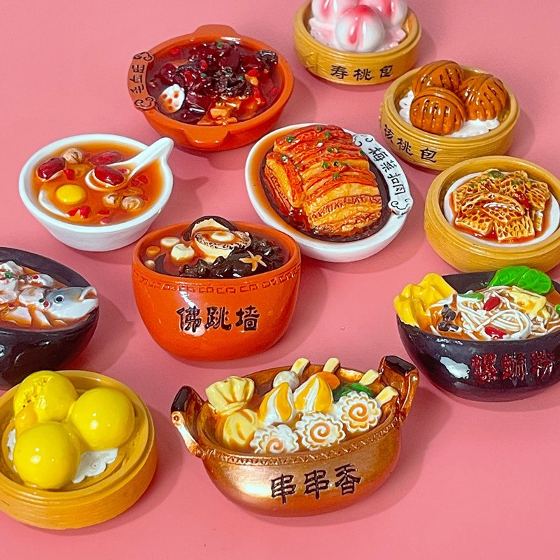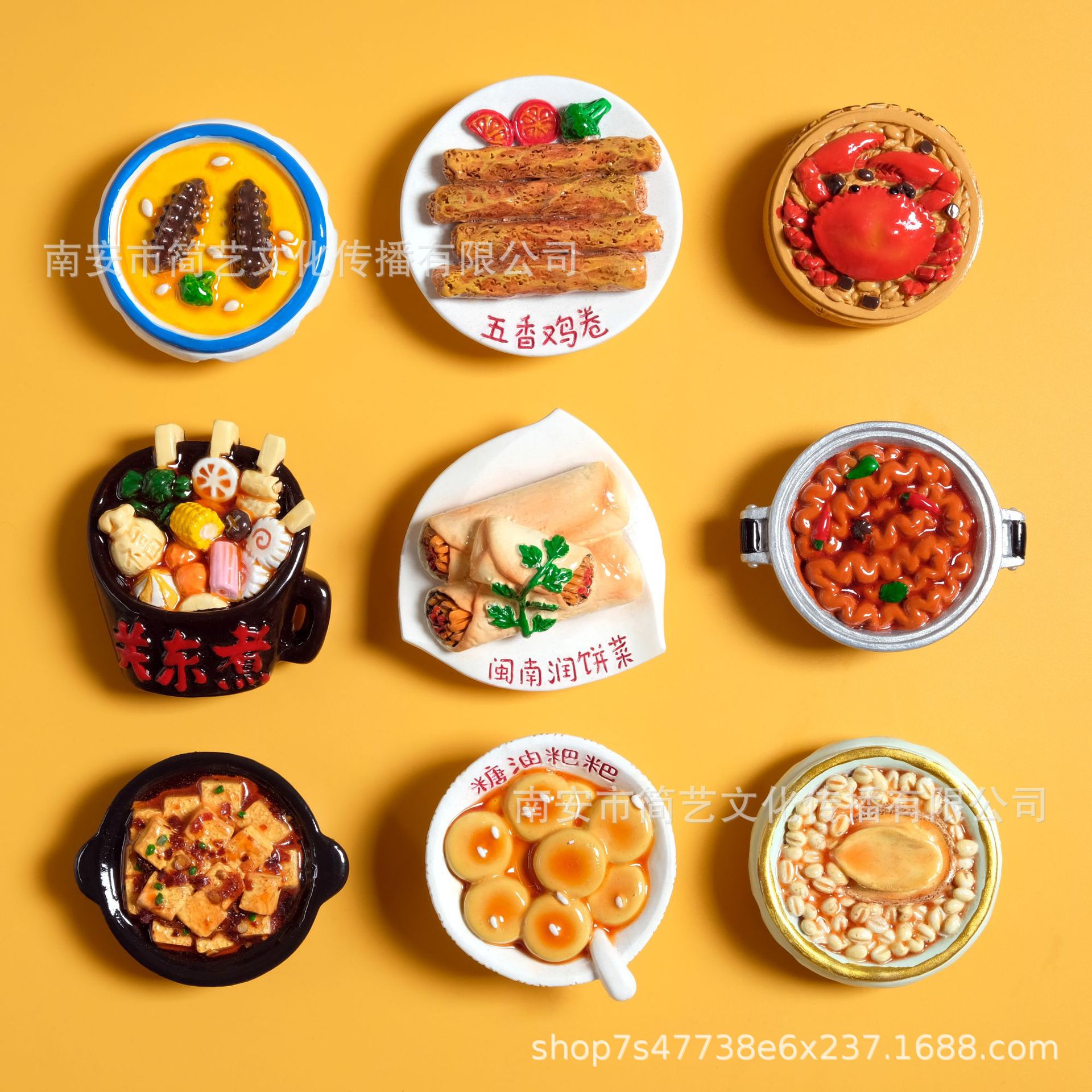 创意中国美食冰箱贴仿真食物3d立体佛跳墙狮子头磁性贴磁贴装饰品