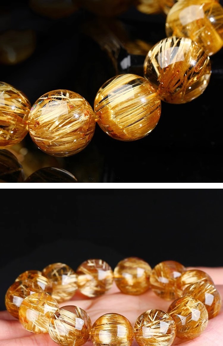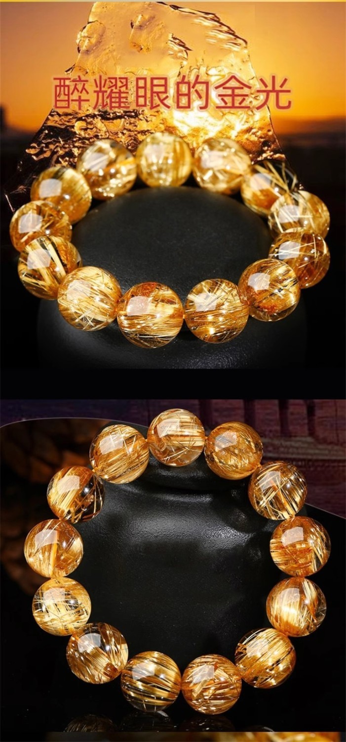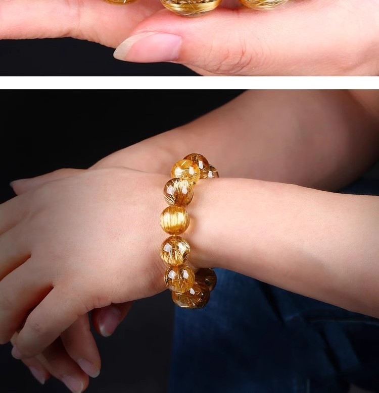 本格的な天然水晶金発晶ブレスレット黄水晶チタン晶手串男性招財黄発晶カップルアクセサリー