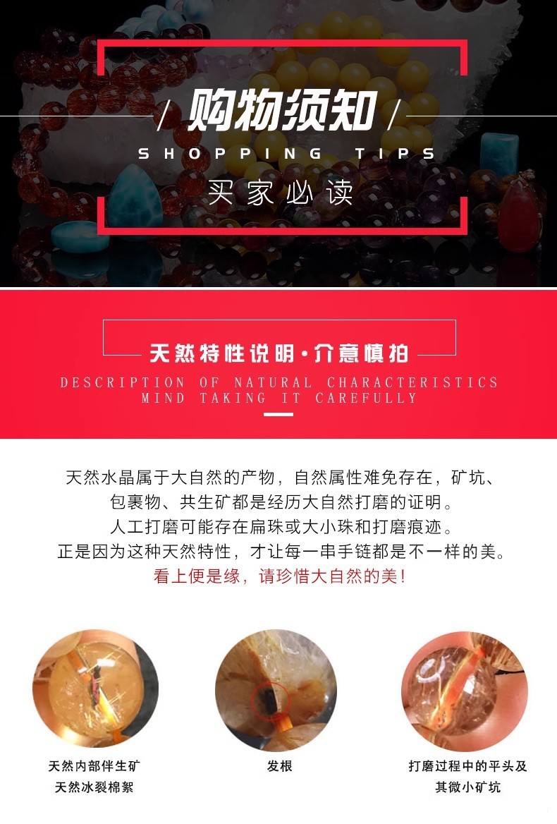 天然水晶超フラッシュチタン結晶ブレスレット男金髪晶手串黄髪晶仏珠女板チタン髪ネックレス