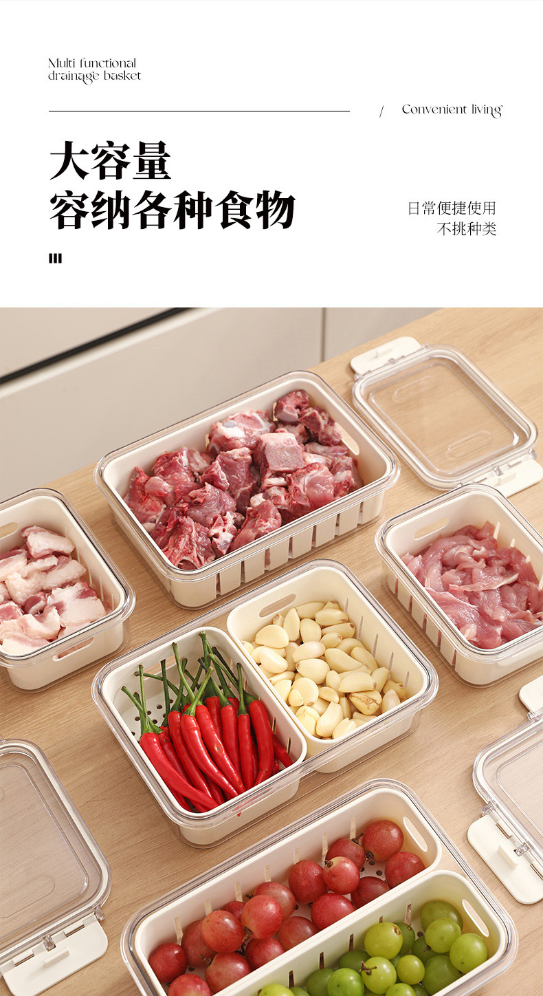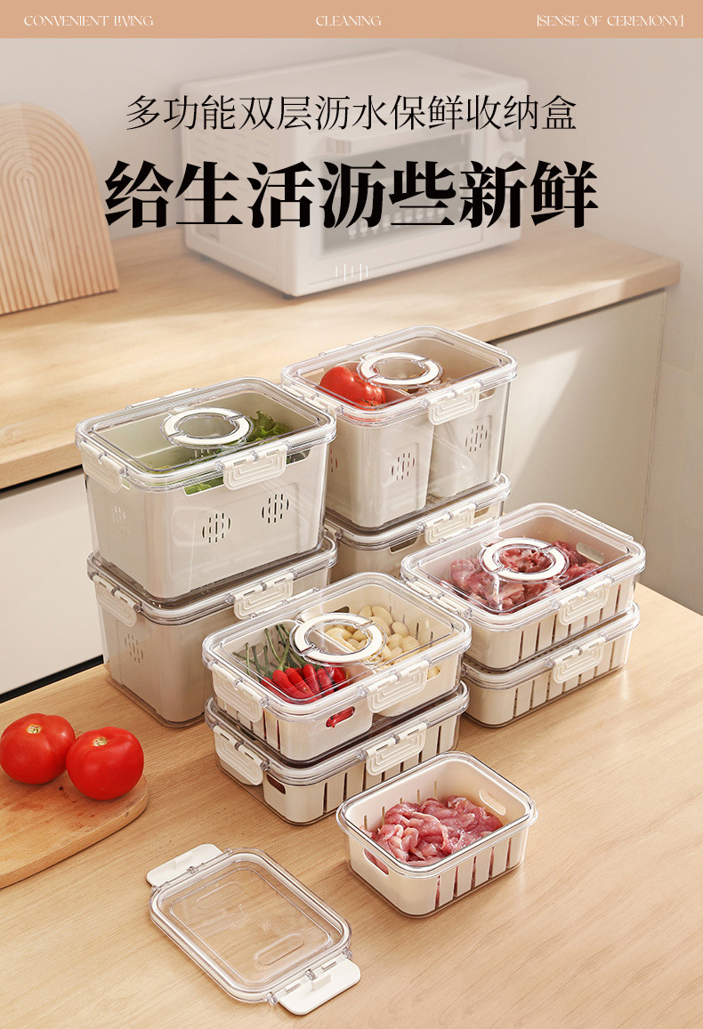 タッパー食品級冷蔵庫収納ケース専用冷蔵冷凍シール新鮮保持キッチン果物野菜ケース水切り