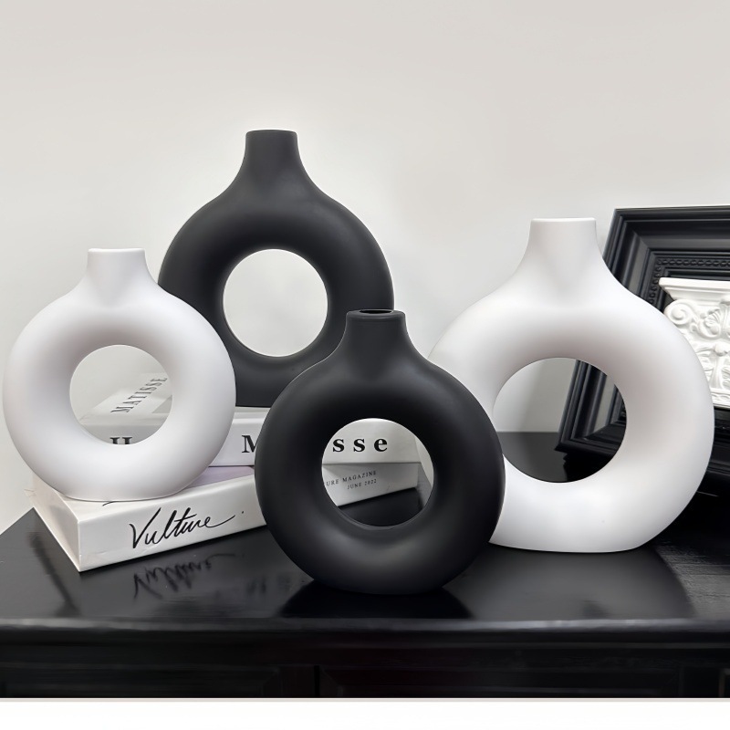 シンプルな花瓶クリエイティブドーナツ花瓶北欧ins風百合軽贅沢レトロなドライフラワー装飾品