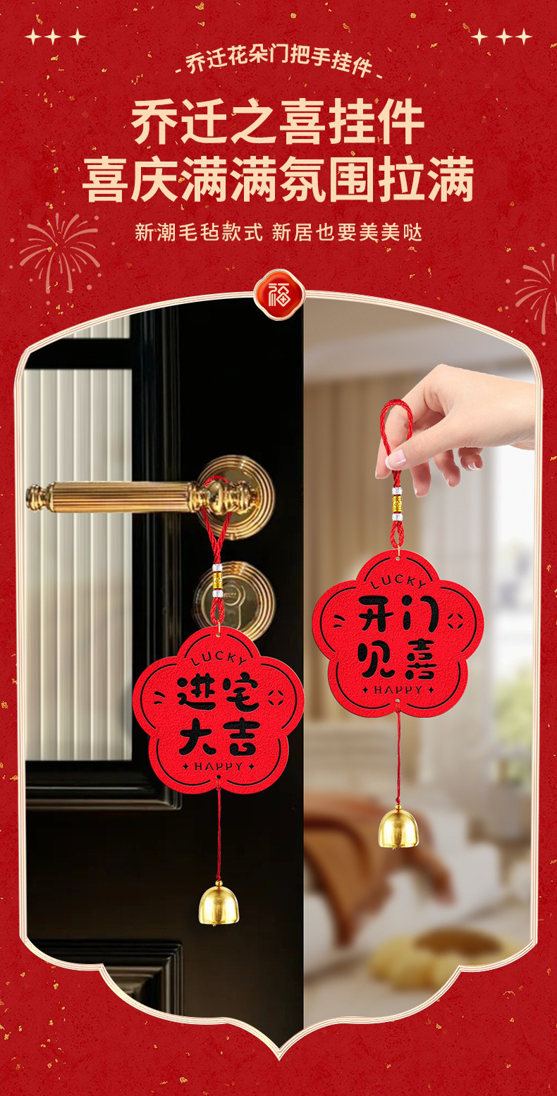 乔迁之喜门挂装饰入户门把手挂件新居布置氛围搬家入宅仪式用品