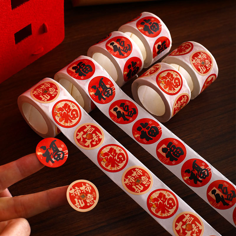 新年あけましておめでとうございますステッカー 赤い新年の創造的な祝福文字ステッカー 春節ギフト 赤い包装装飾ラベル ロール状ステッカー