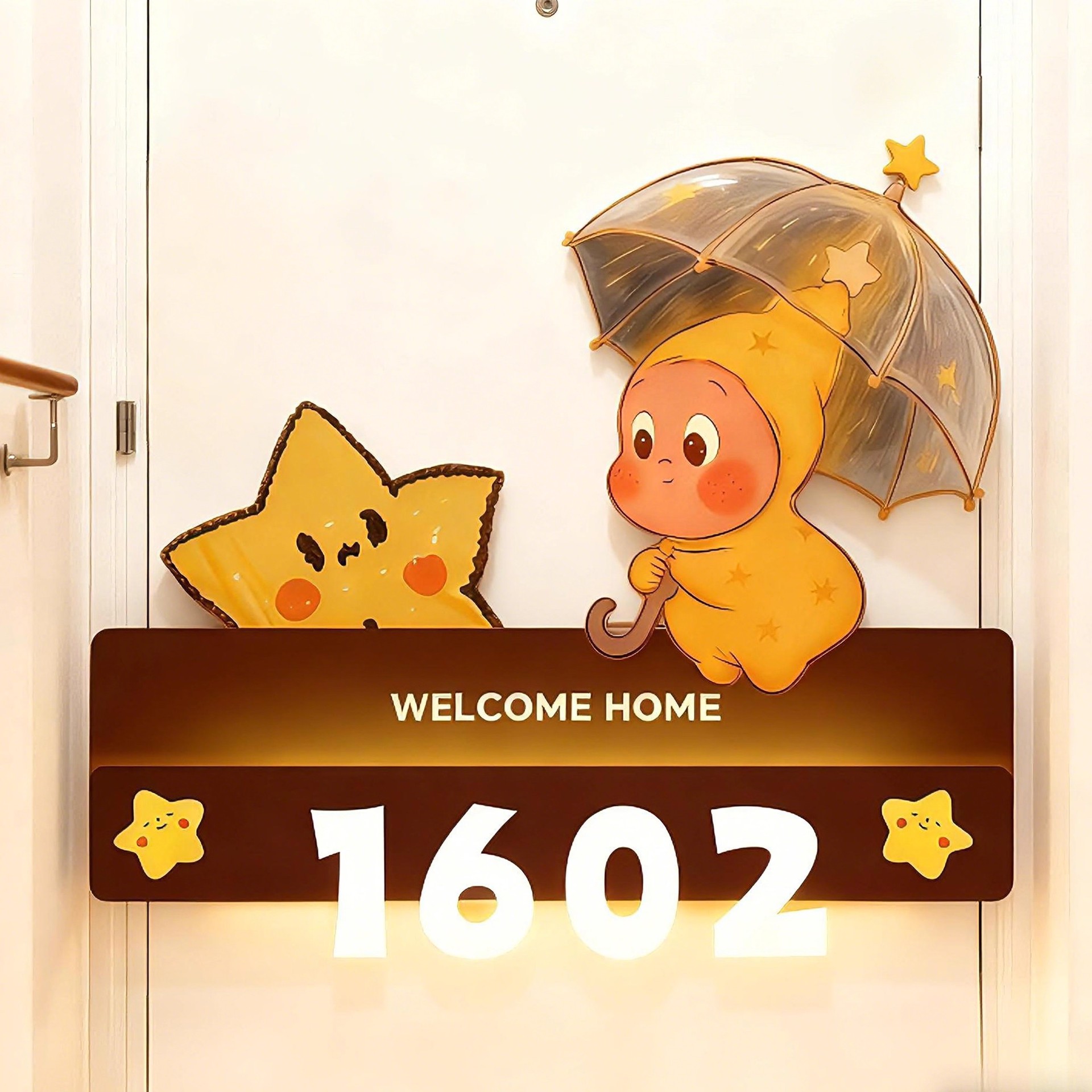 发光门牌星星人入户门牌磁吸感应号码门牌定制家用入户门牌号高级