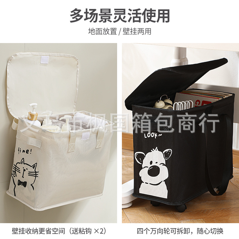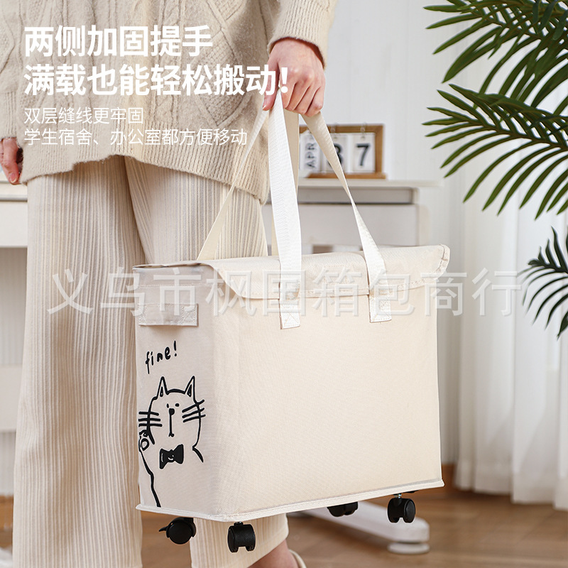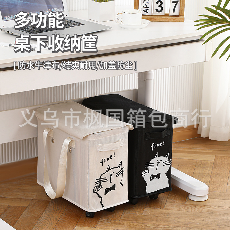 オックスフォード布収納バスケットオフィス書斎寮テーブルの下に移動可能なプーリー雑物収納ケース折り畳み汚いバスケット