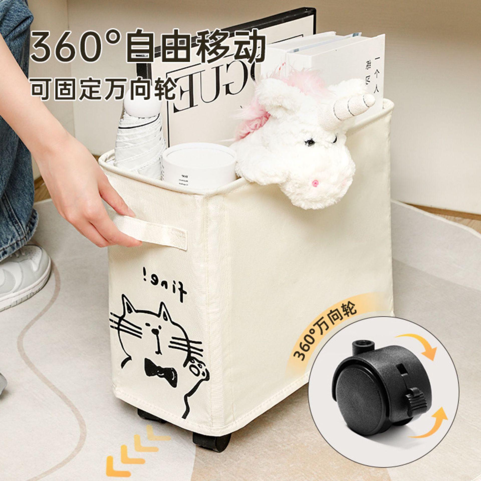 国境を越えて折り畳み可能なごみ収納バスケット多機能挟みテーブル底収納バスケットかわいい子猫玩具収納バスケット