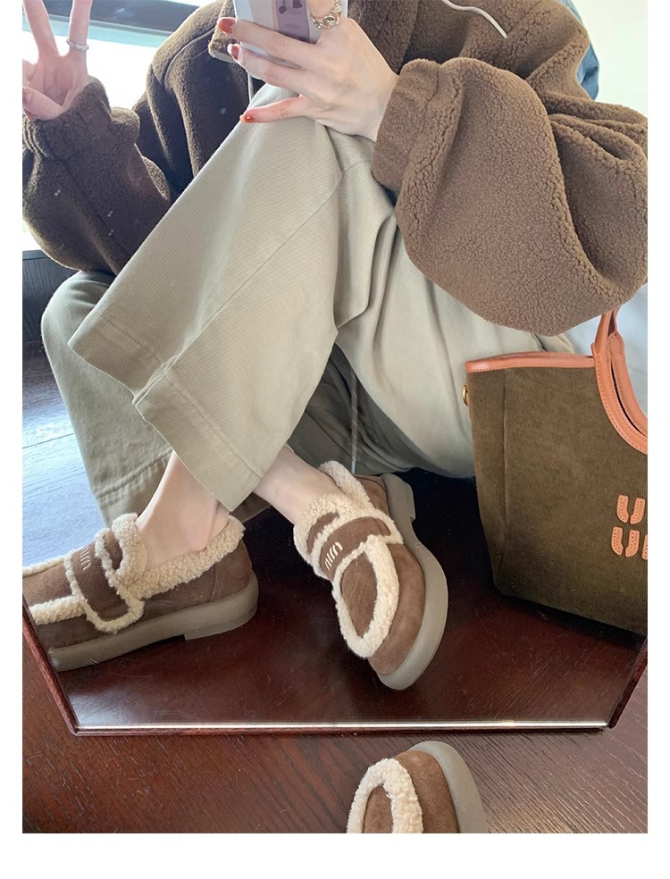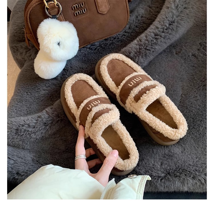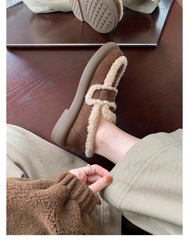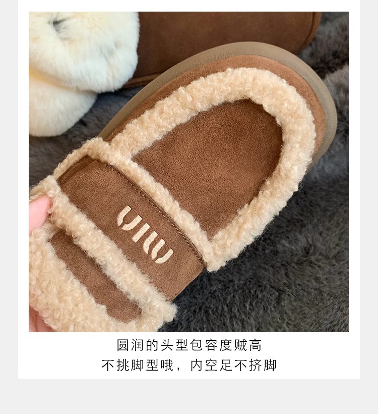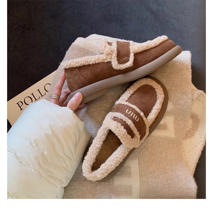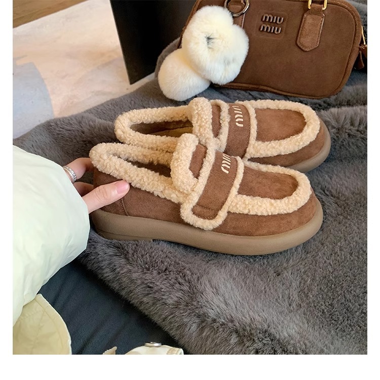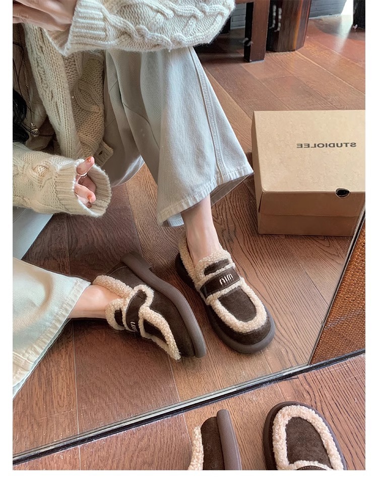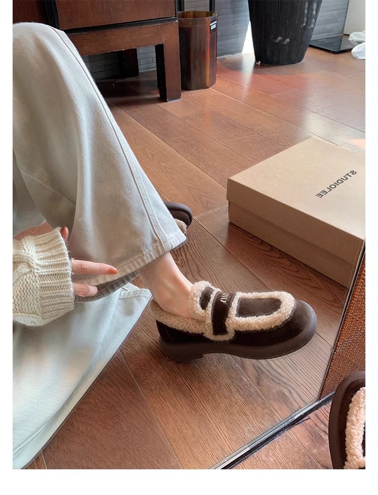 丸頭スエード暖かいスリッポンシューズ、アミウ、厚底、裏起毛、厚手の綿靴、毛皮ローファー、女性用