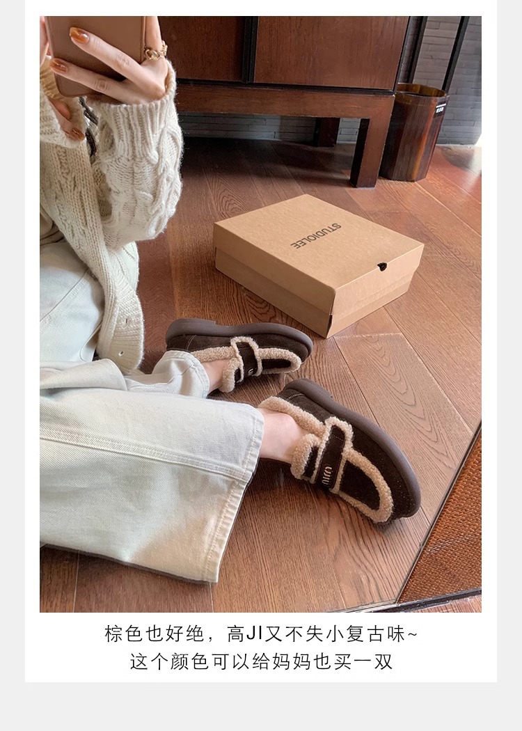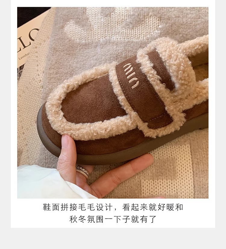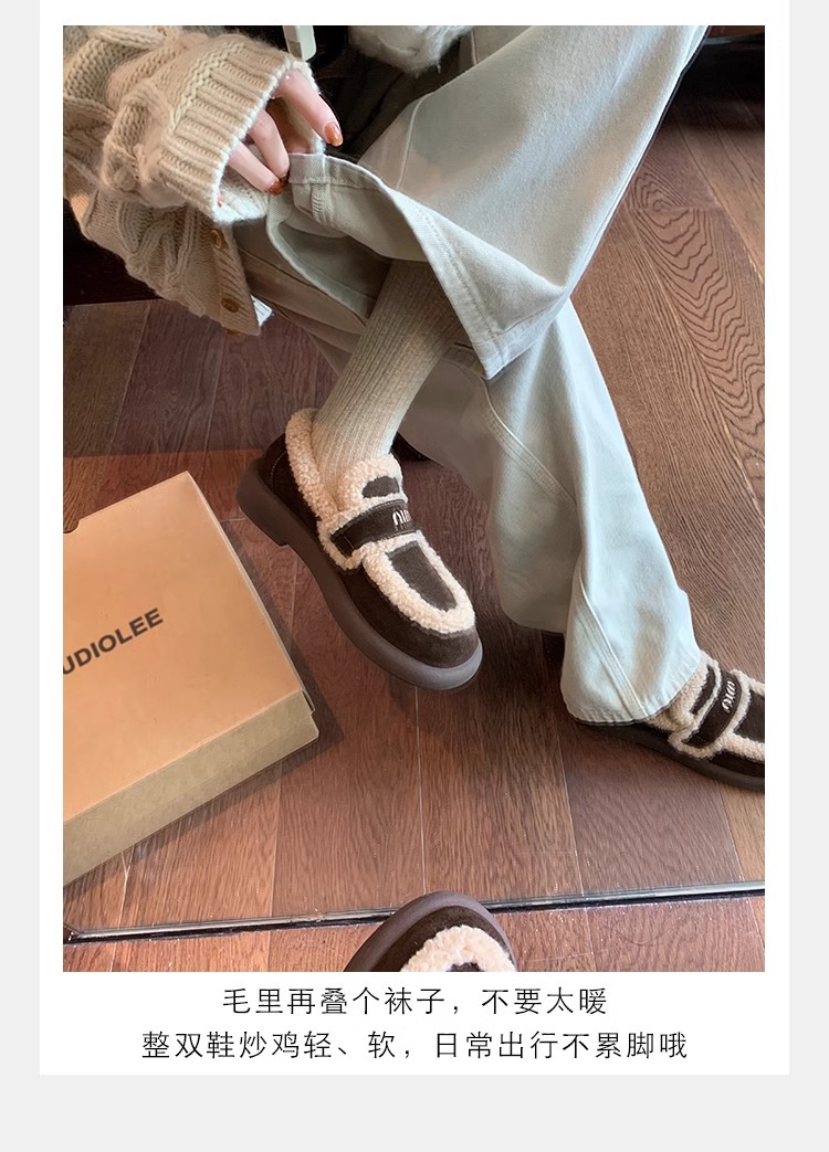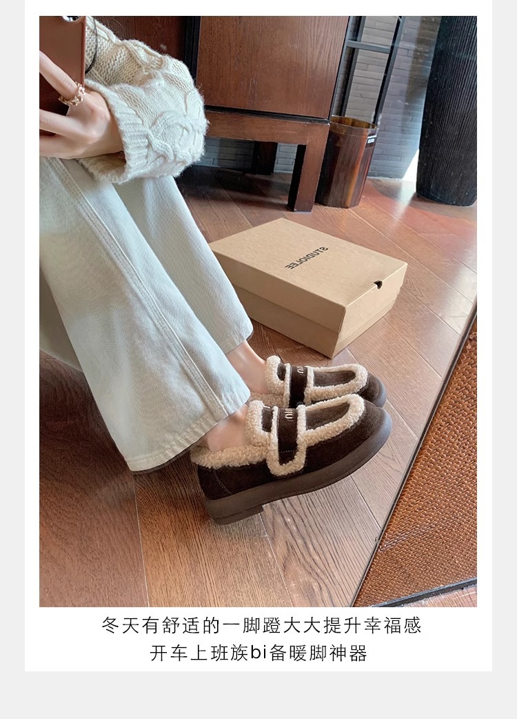 增高4cm复古一脚蹬加绒乐福鞋女2025秋冬圆头厚底保暖毛毛棉鞋女