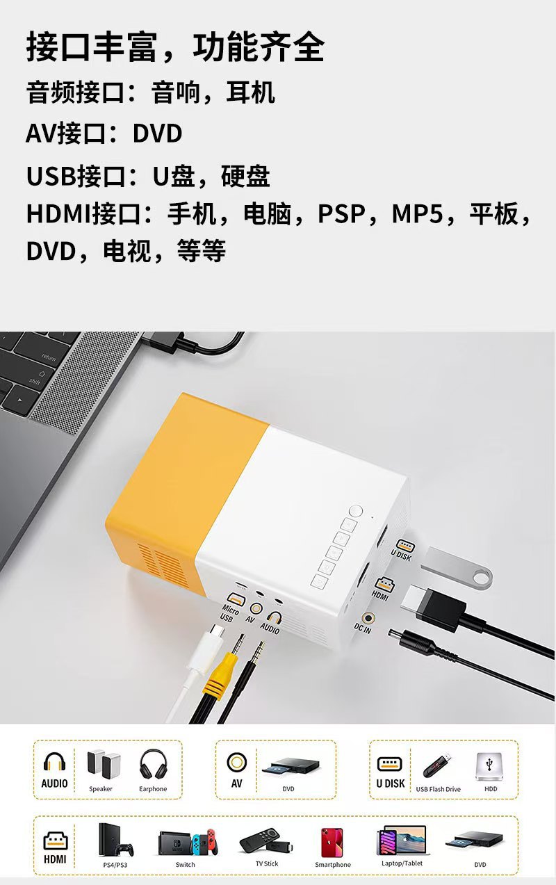 ポータブルhdプロジェクター寮用小型プロジェクターマイクロポータブル工場直販クロスボーダー