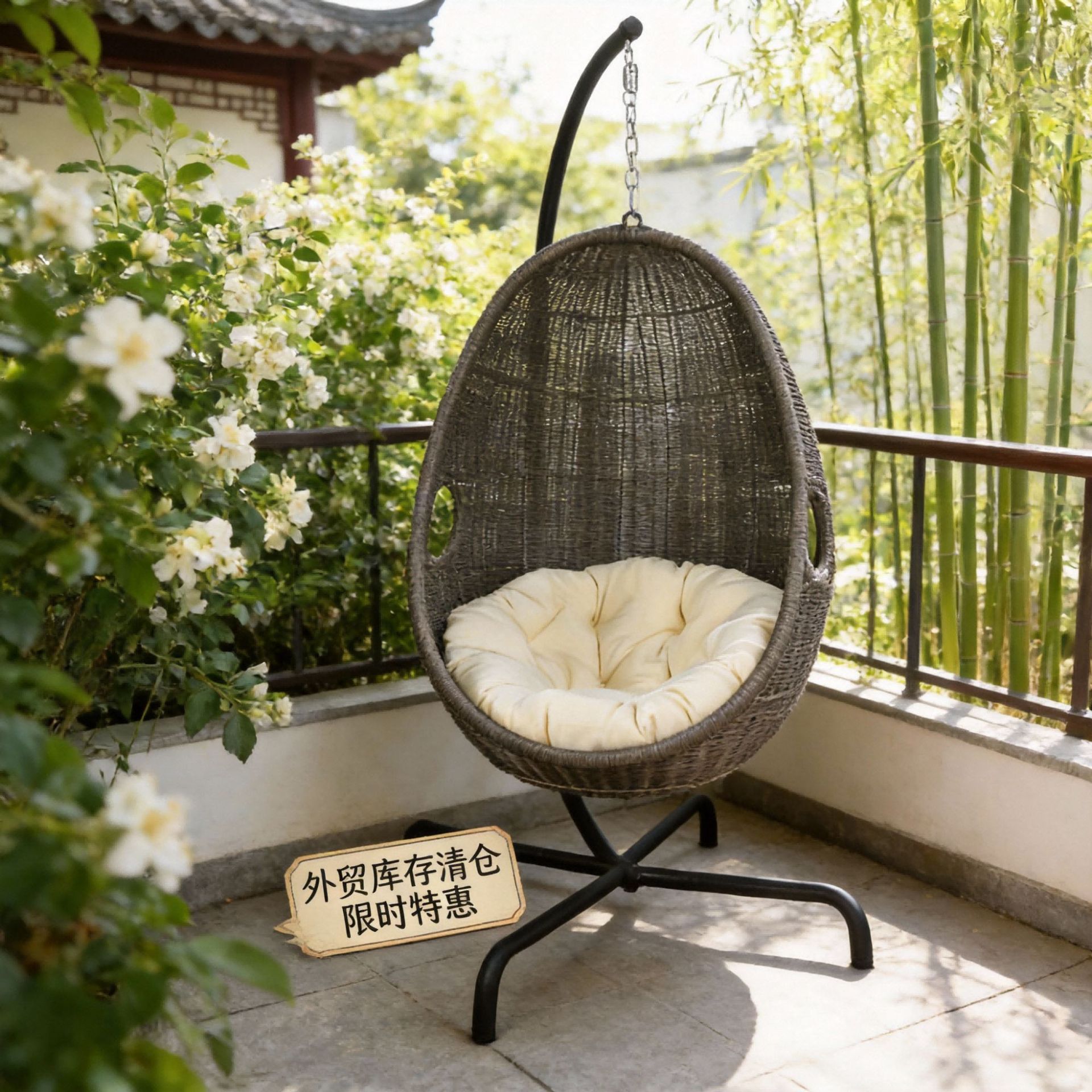 户外金属藤椅室内客厅阳台家用室外摇篮椅秋千吊蓝花园庭园摇摇椅