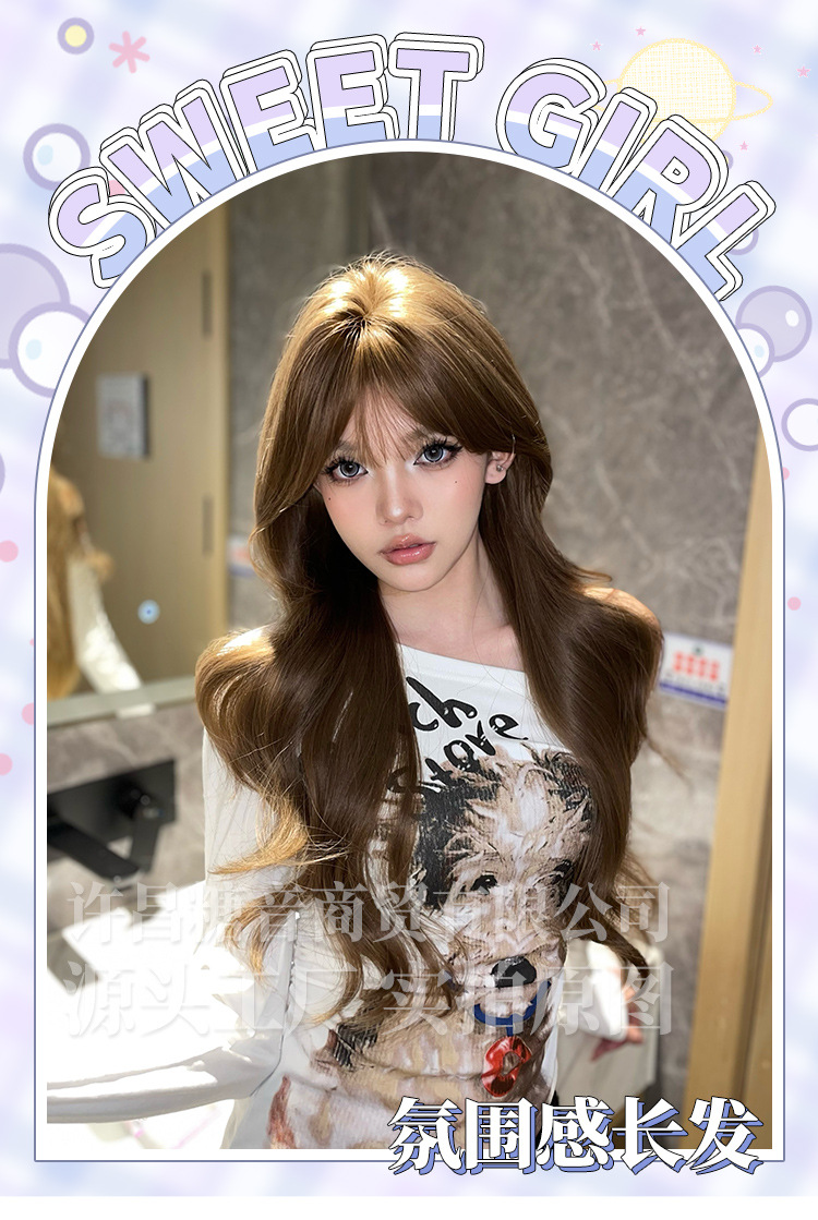 砂糖の音のかつらの女性の日常のネットの赤い甘さのlolita自然の新型の長い巻き髪の斉前髪の全頭カバー式