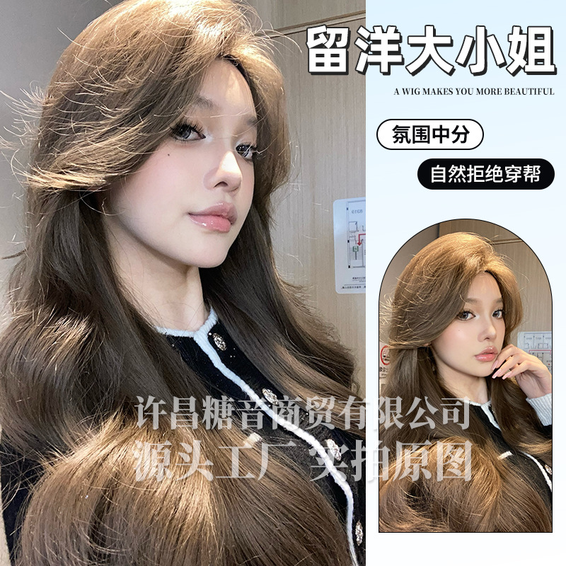 砂糖の音のかつらの女性の日常のネットの赤い長巻きの髪の夏の新型の自然で甘い全体のカバー式