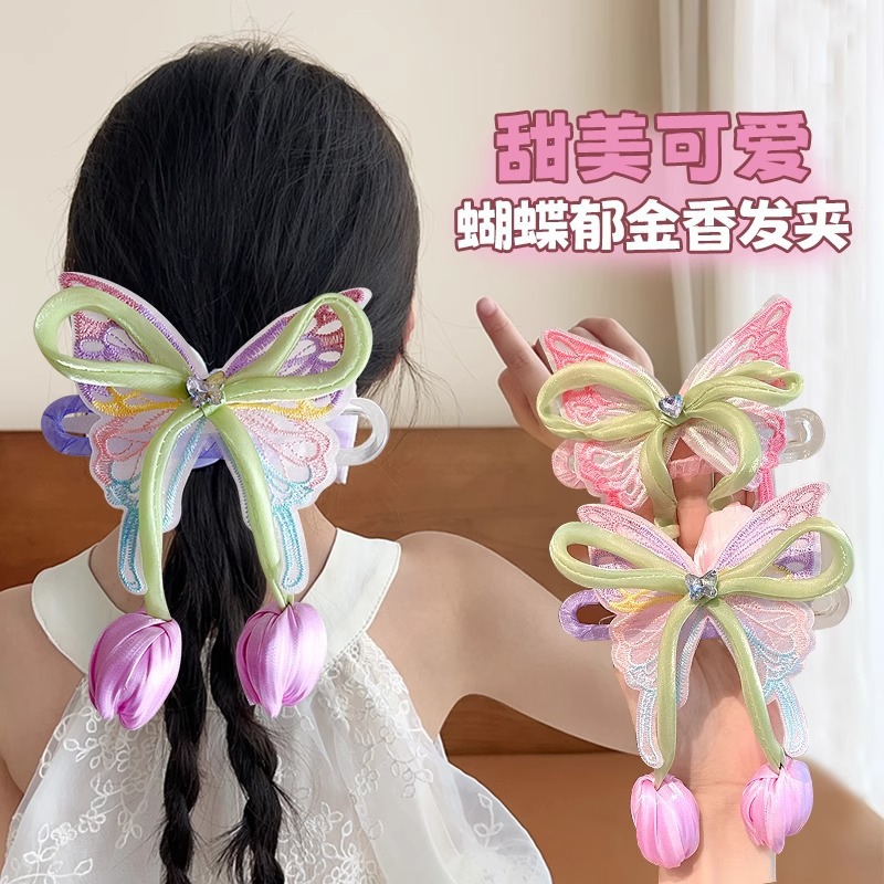 新しい子供用スーパーフェアリーチューリップバタフライプレートアーティファクトヘアピン後頭部ポニーテールクリップガールプリンセスヘアアクセサリーファッショナブル