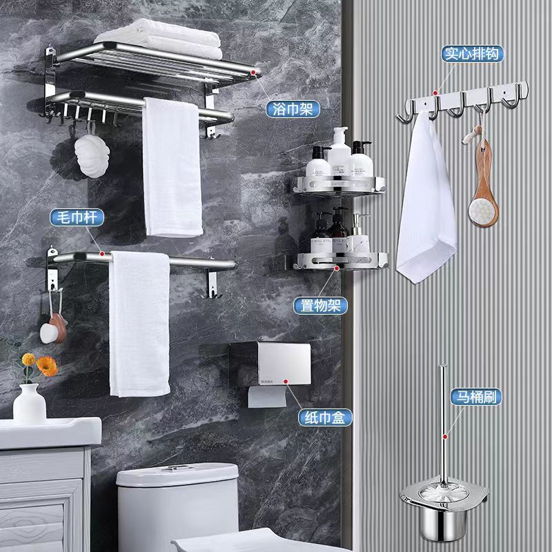 百悍毛巾架卫生间置物架免打孔不锈钢浴巾架一体挂架套件厕所浴室