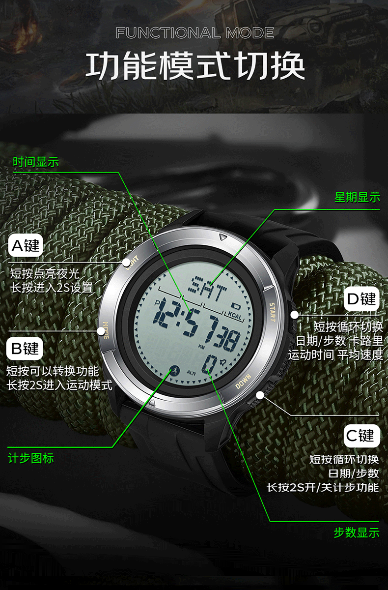 専門店の規格品の爆発の電子時計のコンパスのメトロノームの歩数計の運動の腕時計の防水の多機能の登山の時計の潮