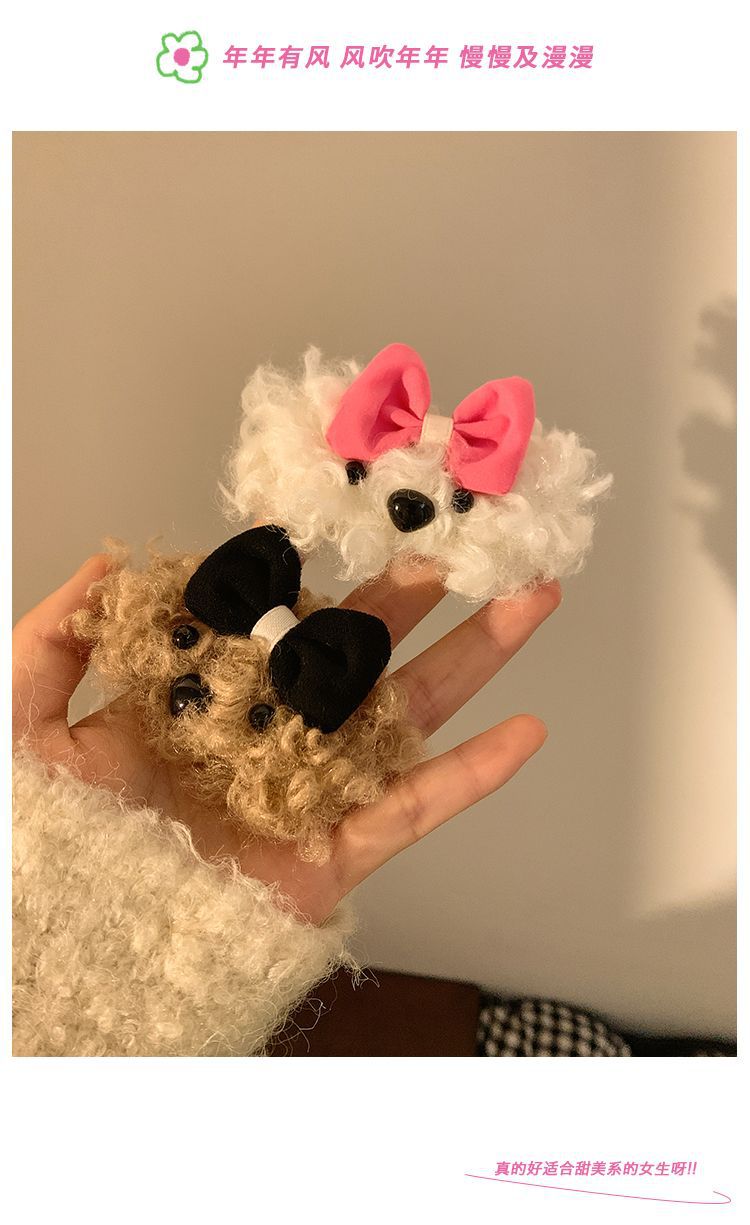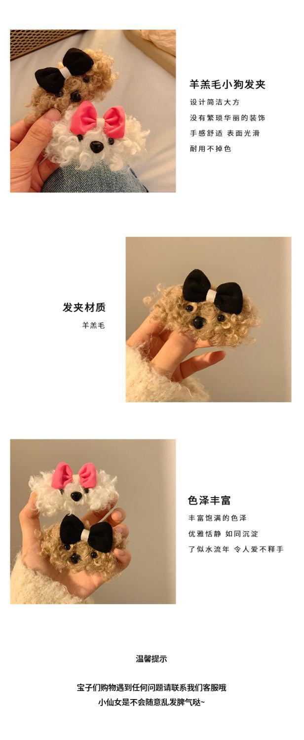 羊羔毛小狗发夹女秋冬季日系小众蝴蝶结边夹少女心卡通毛绒绒发饰