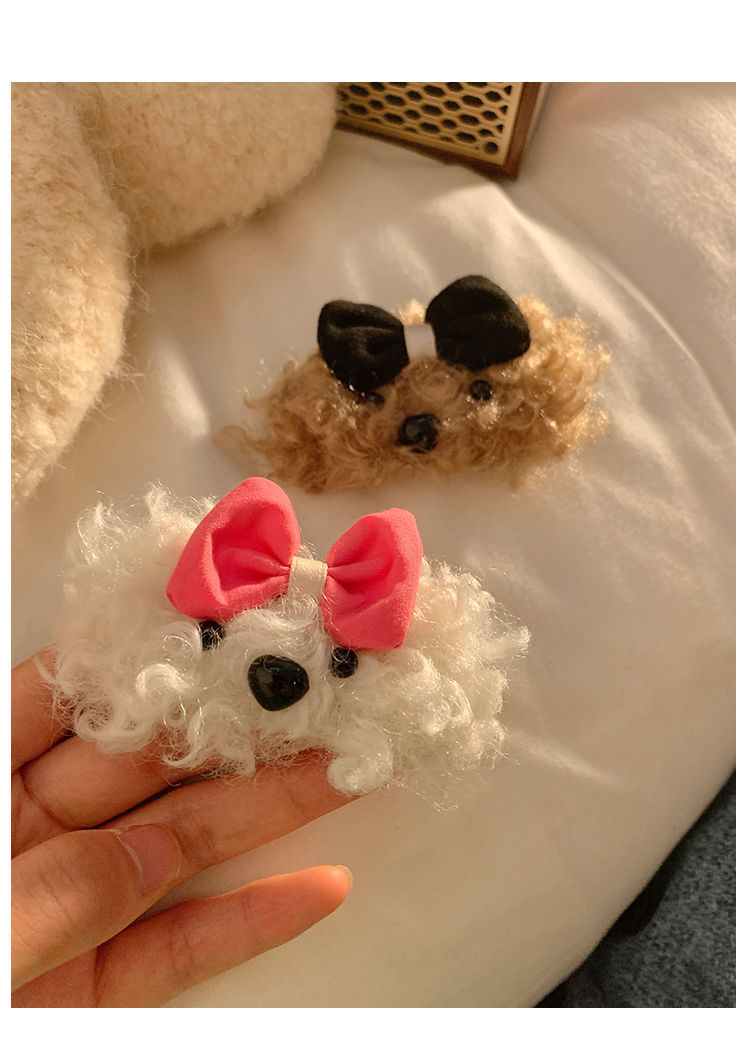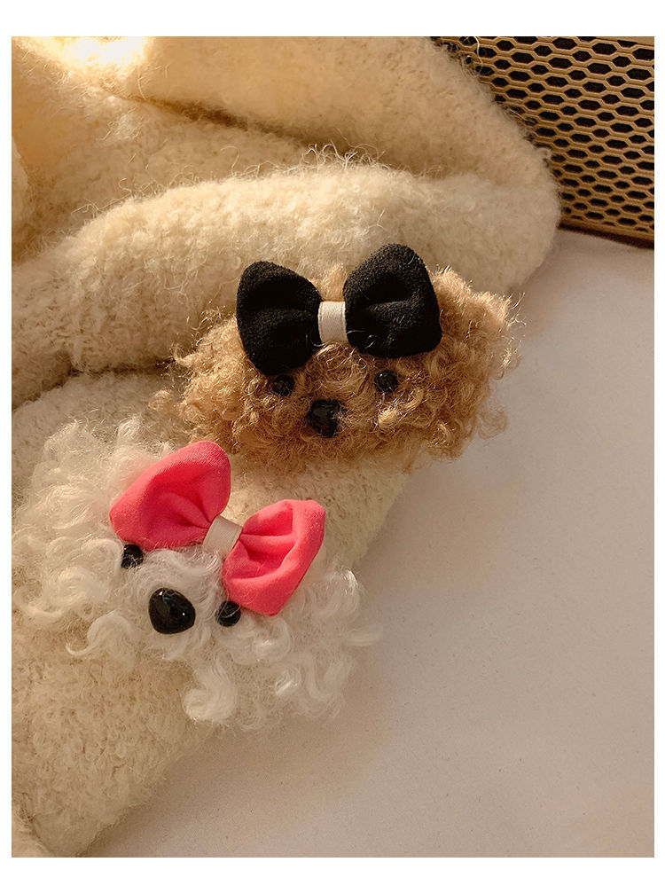 秋冬のぬいぐるみの蝶結びの子犬のヘアピンが可愛いです。