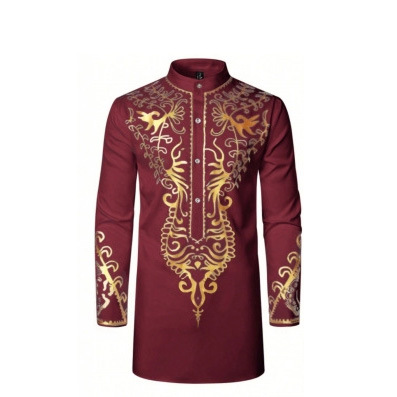 2024年売れ筋海外貿易向けメンズシャツ、アフリカのイスラム教徒男性用スーツ、金箔トップス(単品)