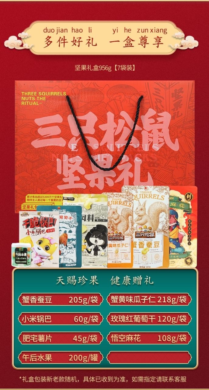 リスナッツのギフトボックス956g/7袋混合スナックのギフトバッグナッツ炒め物セットの祝日共同購入