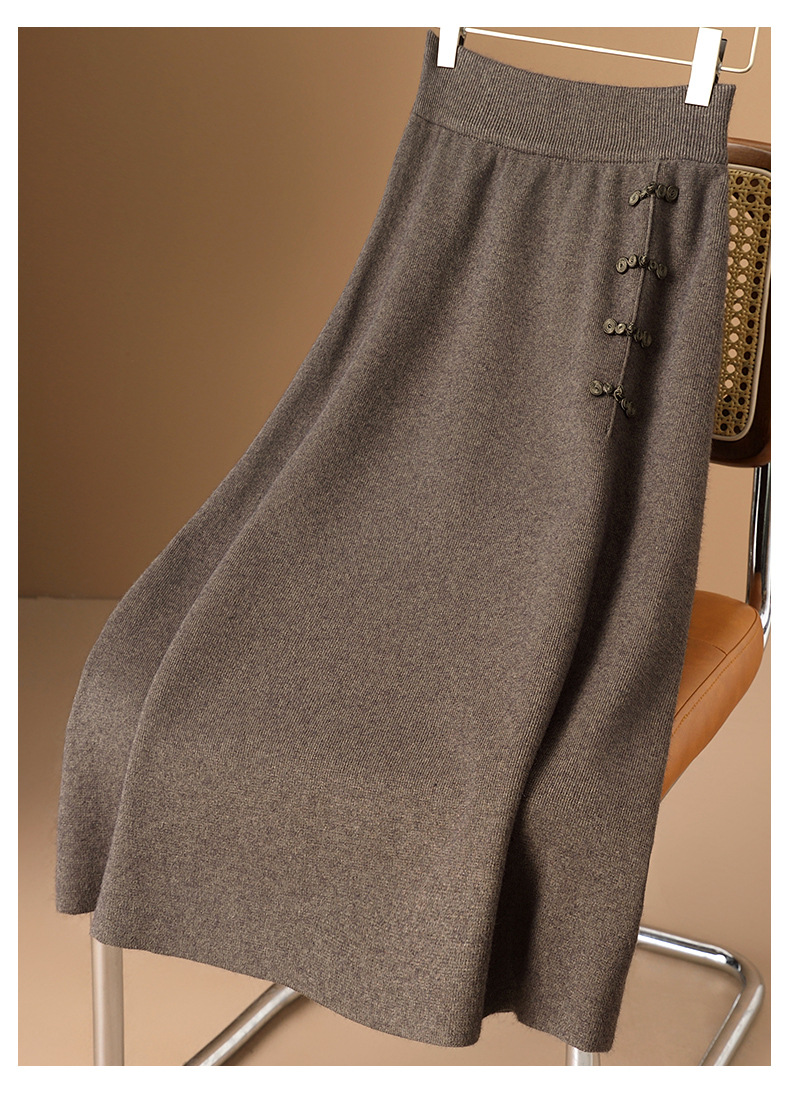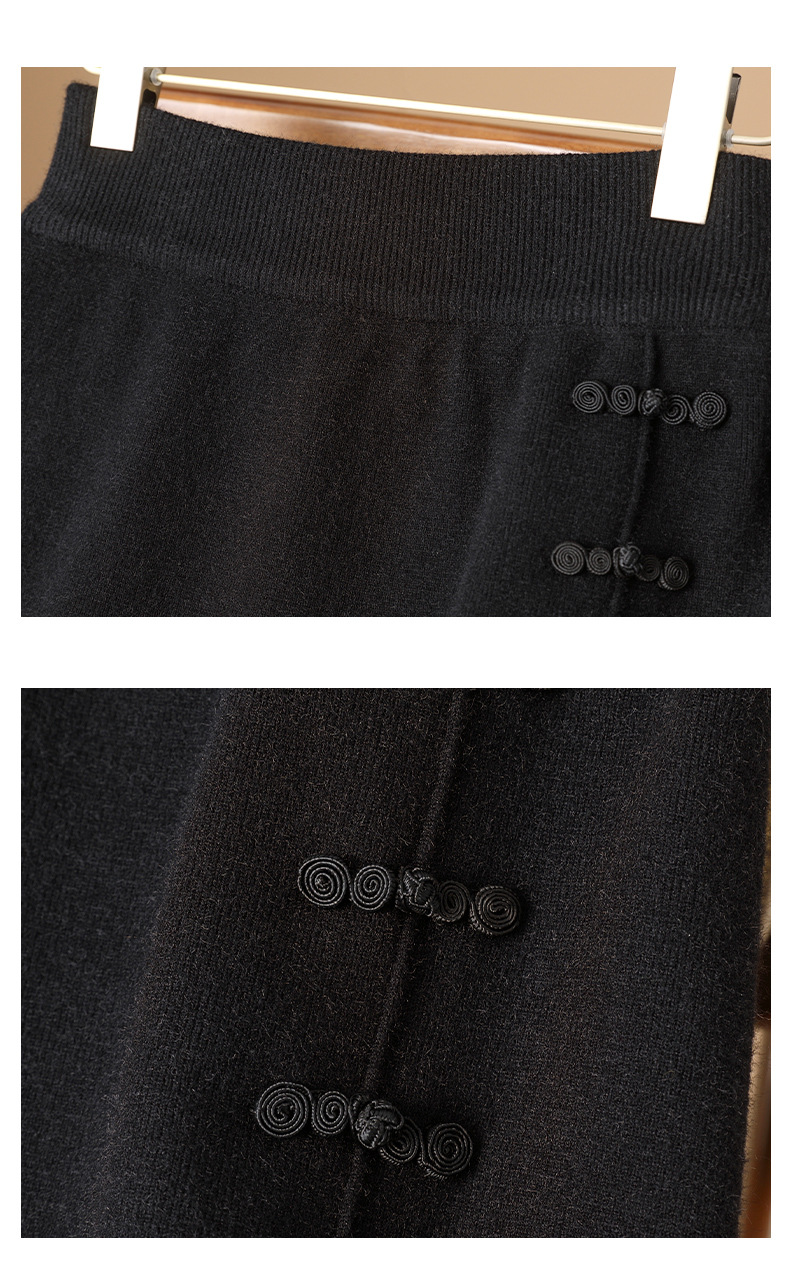 新中式国风盘扣针织半身裙女2025秋冬a字高级感大摆显瘦中长裙子