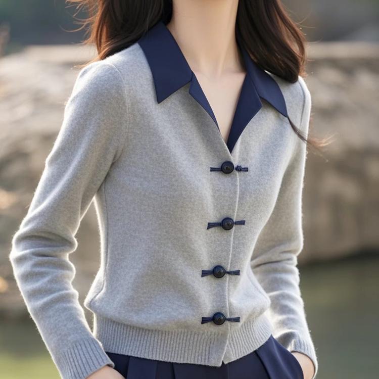 大きいサイズの太ったmmの灰色の水の手の襟のニットは厚くてゆったりしています。