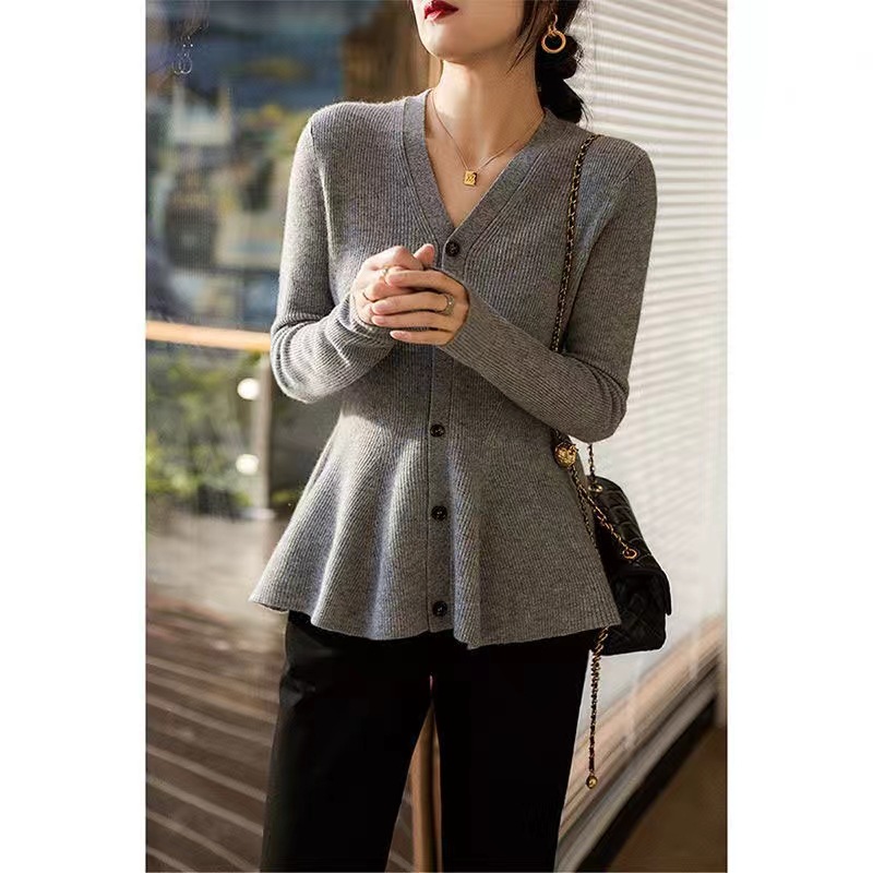 大きいサイズの太ったmm秋冬vネックの袖なしのベストセーターのニットのカーディガンの快適な馬のジャケットのシックな着痩せの上着