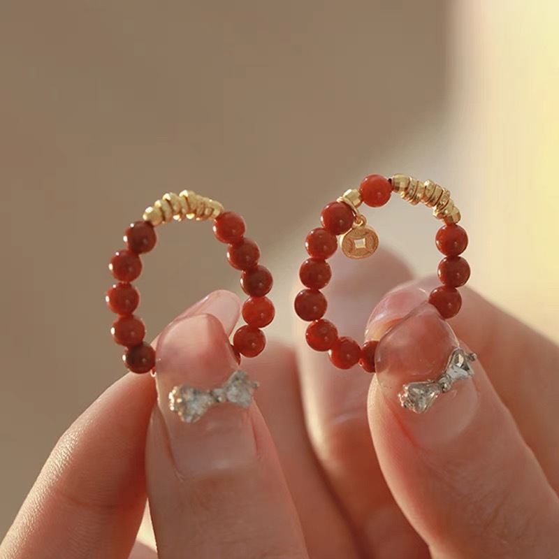 正統『千万両』南紅復古指輪龍年本命年紅指輪新中国式弾力縄