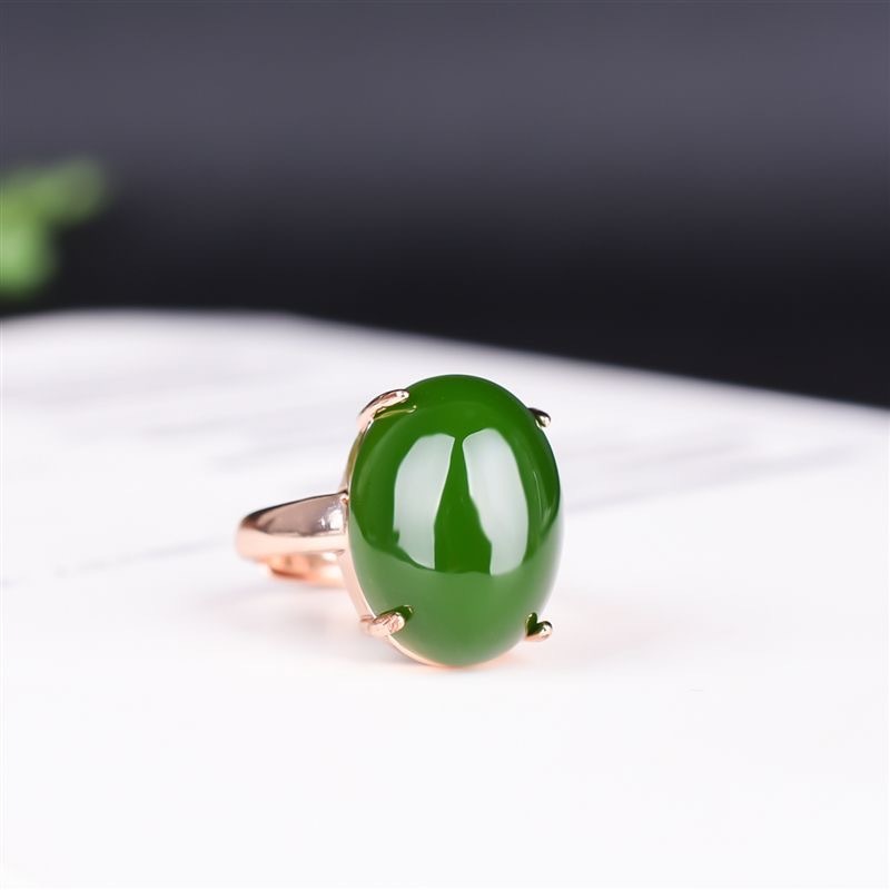 本格的な真玉玉の指輪の女性925バラ金碧玉の指輪の卵の面のほうれん草の緑のk金の玉の指輪の女性