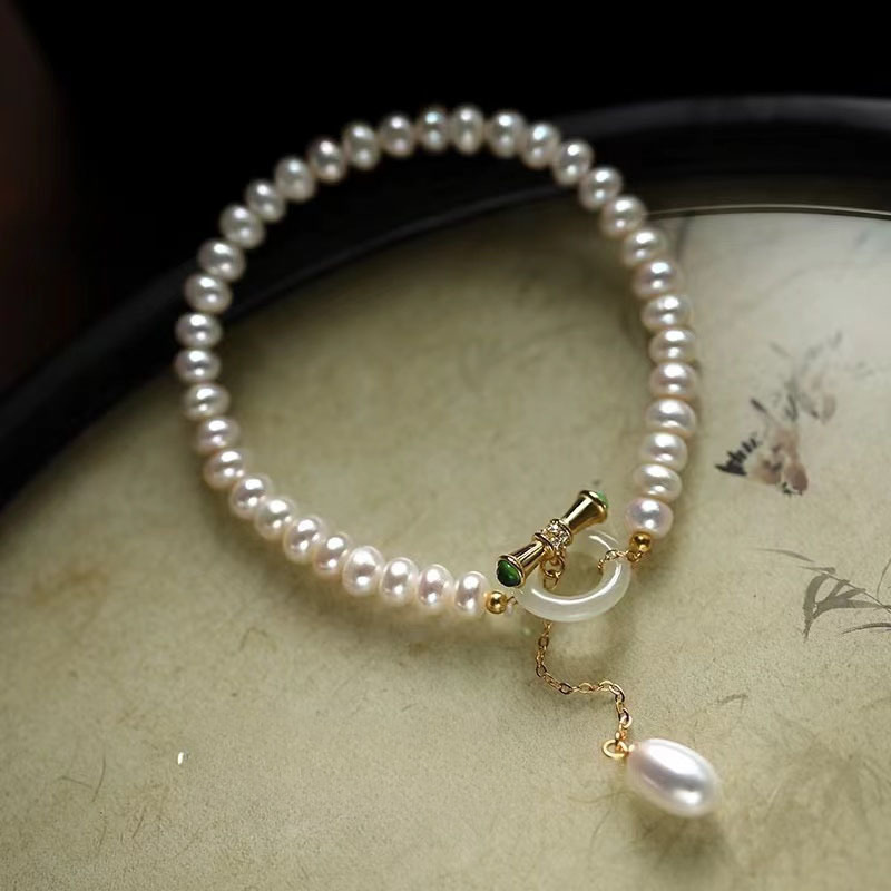 正統和田玉otバックル真珠の手串百合珠純銀ブレスレット女2024新型軽豪華小衆設計