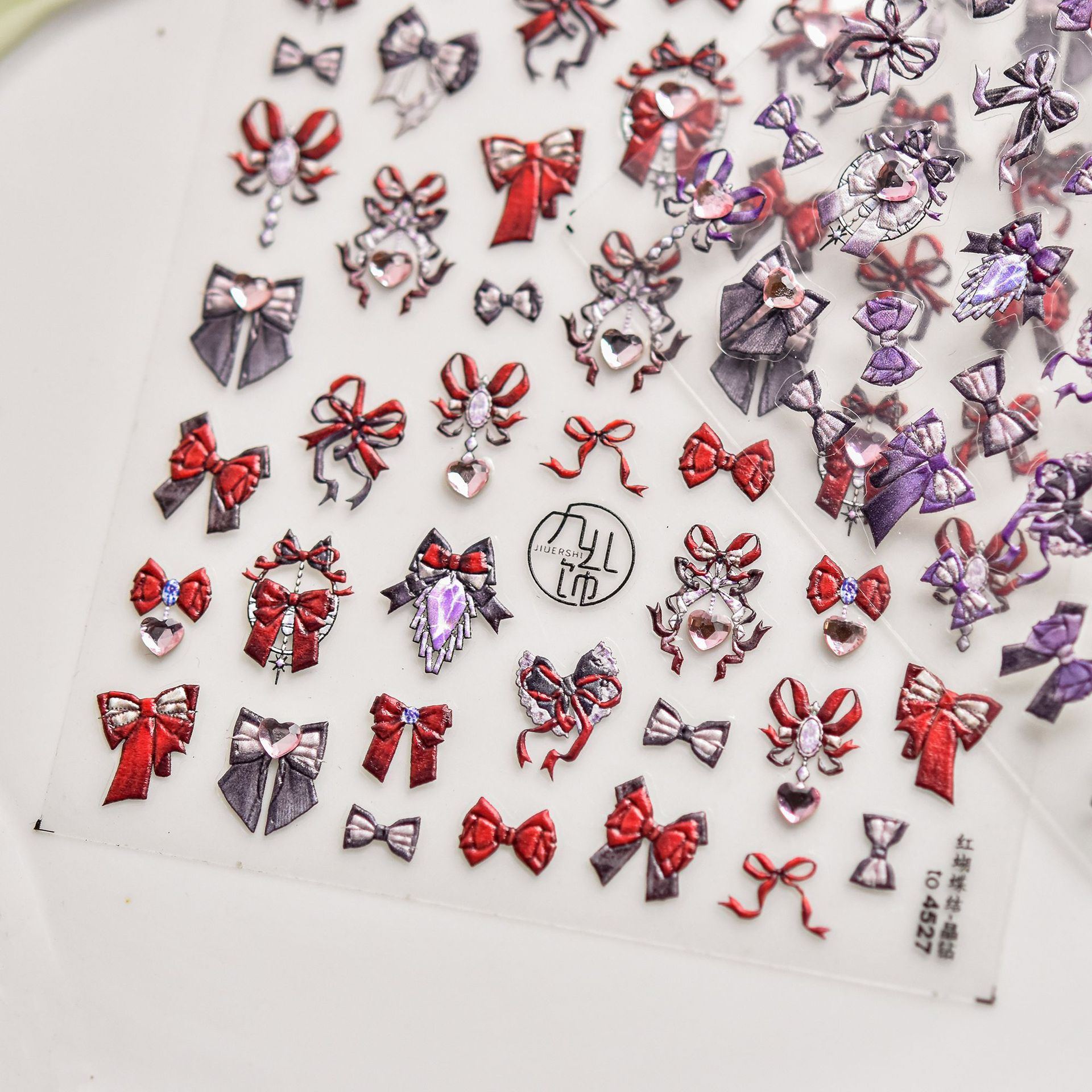 Tomoni結晶ドリルのネイルシールins小紅の本の爆発的な携帯ケースのレトロな爪に赤い蝶結びのシールを貼っています。