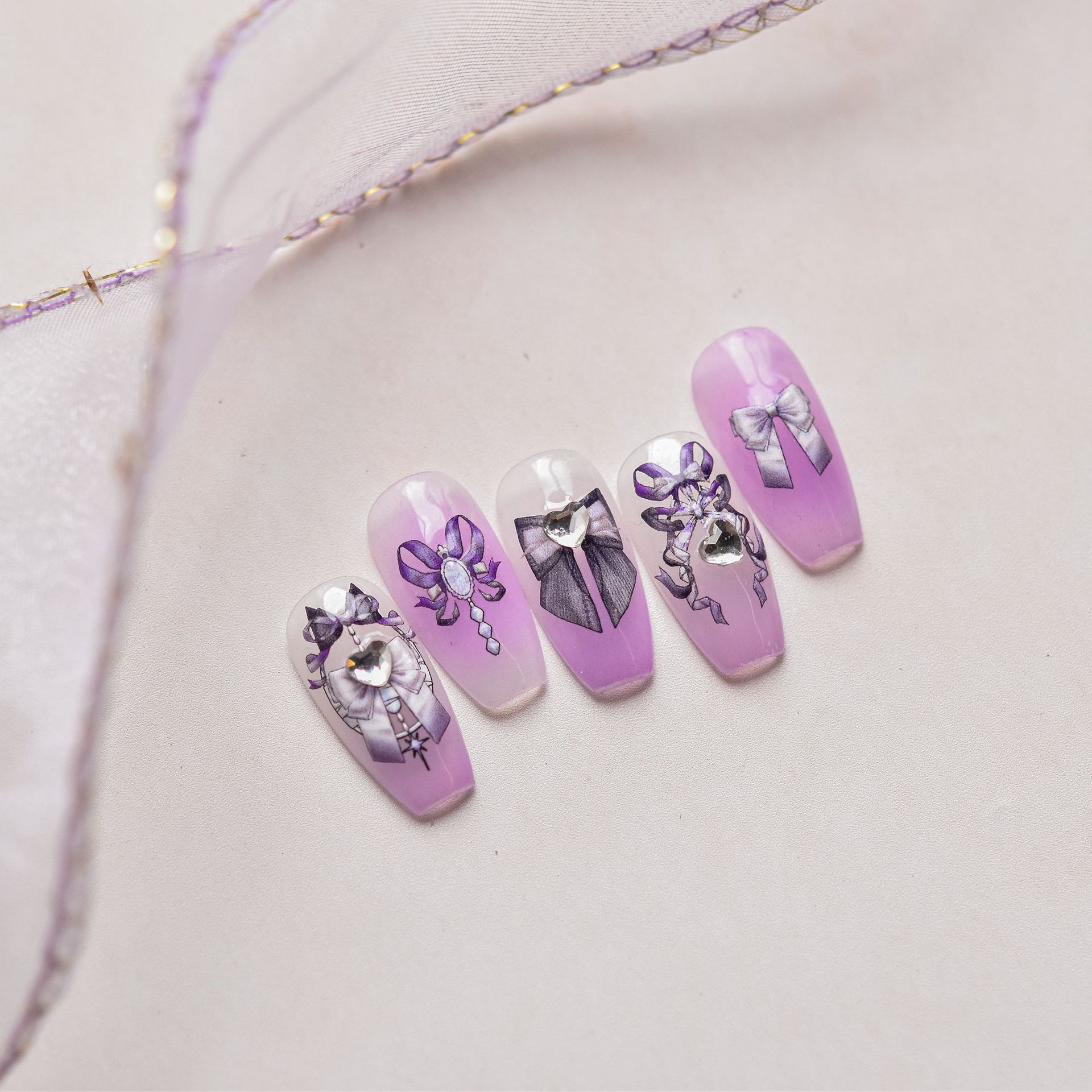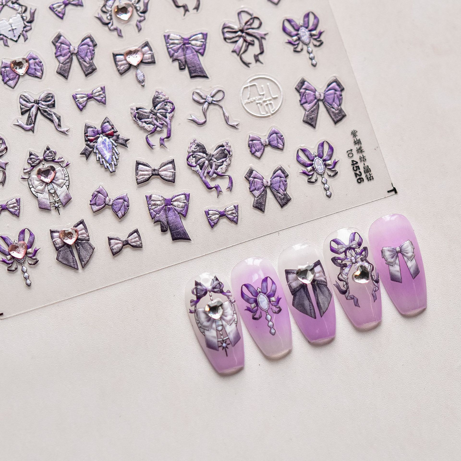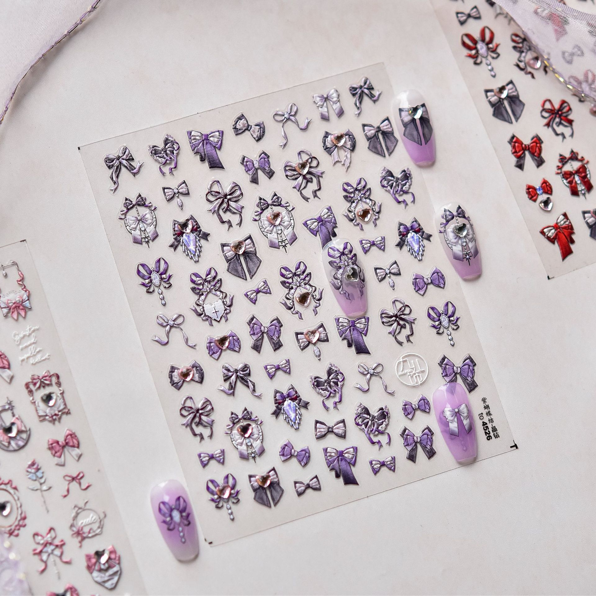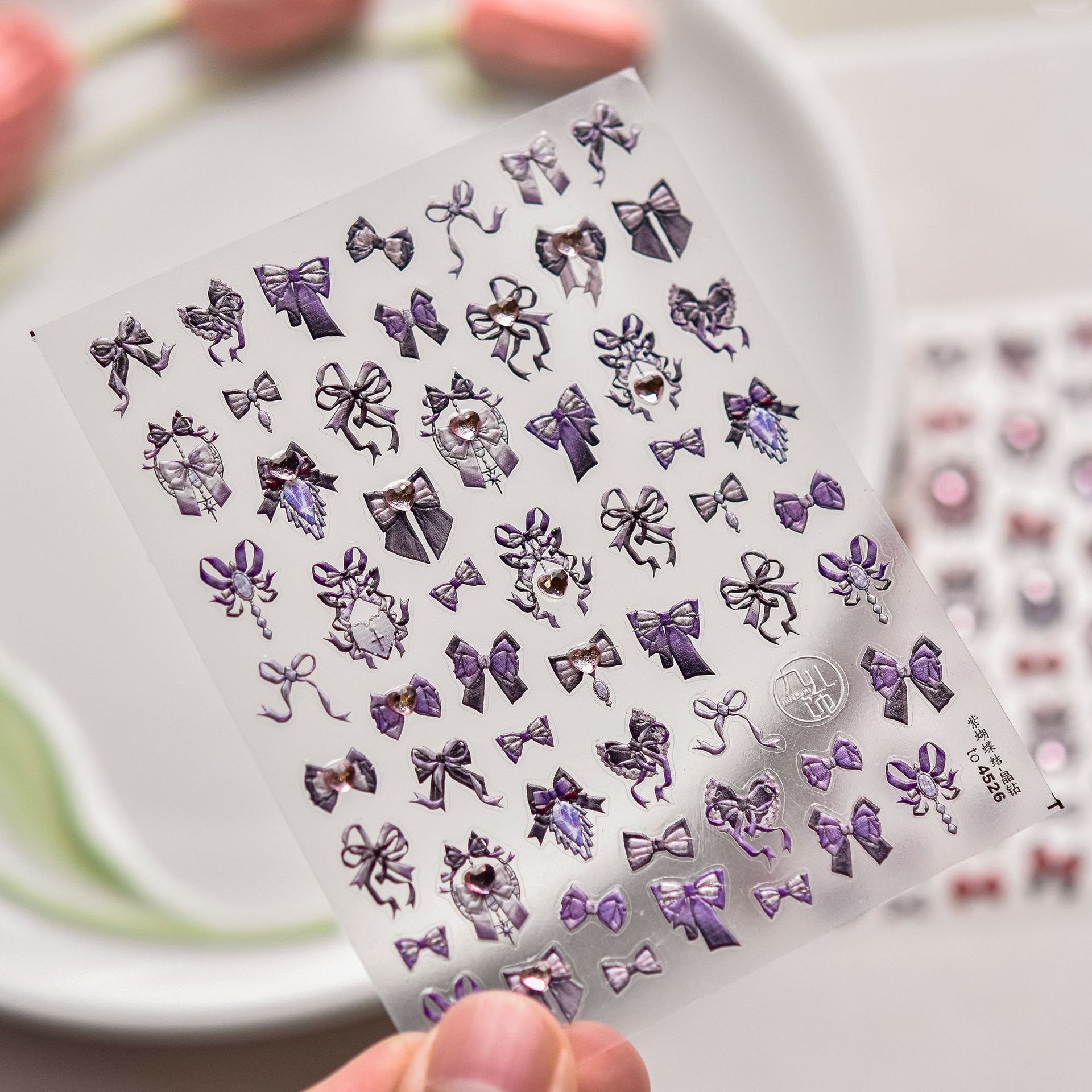 tomoni クリスタルダイヤモンドマニキュアステッカー手描き模擬多用途ネイルステッカーリボン手作りステッカーロング&ショートネイルフルステッカー