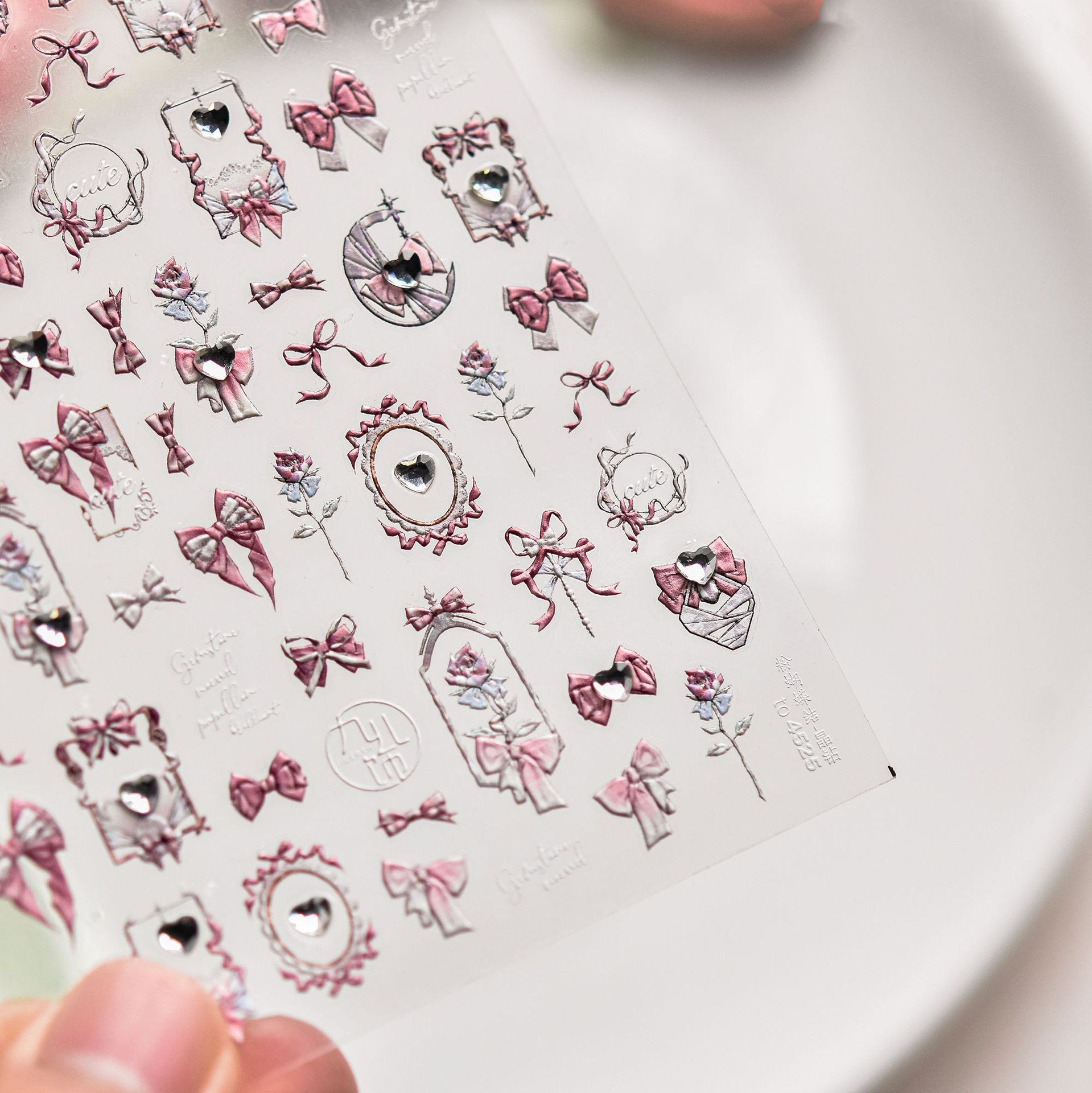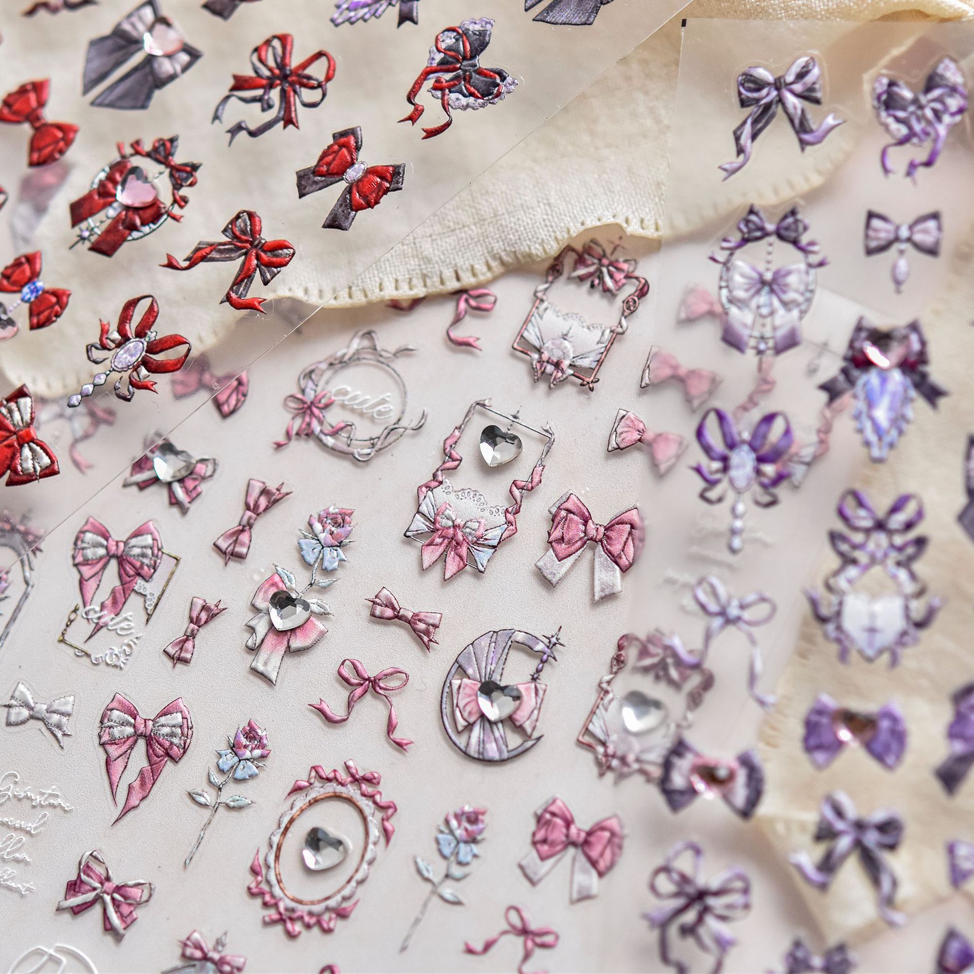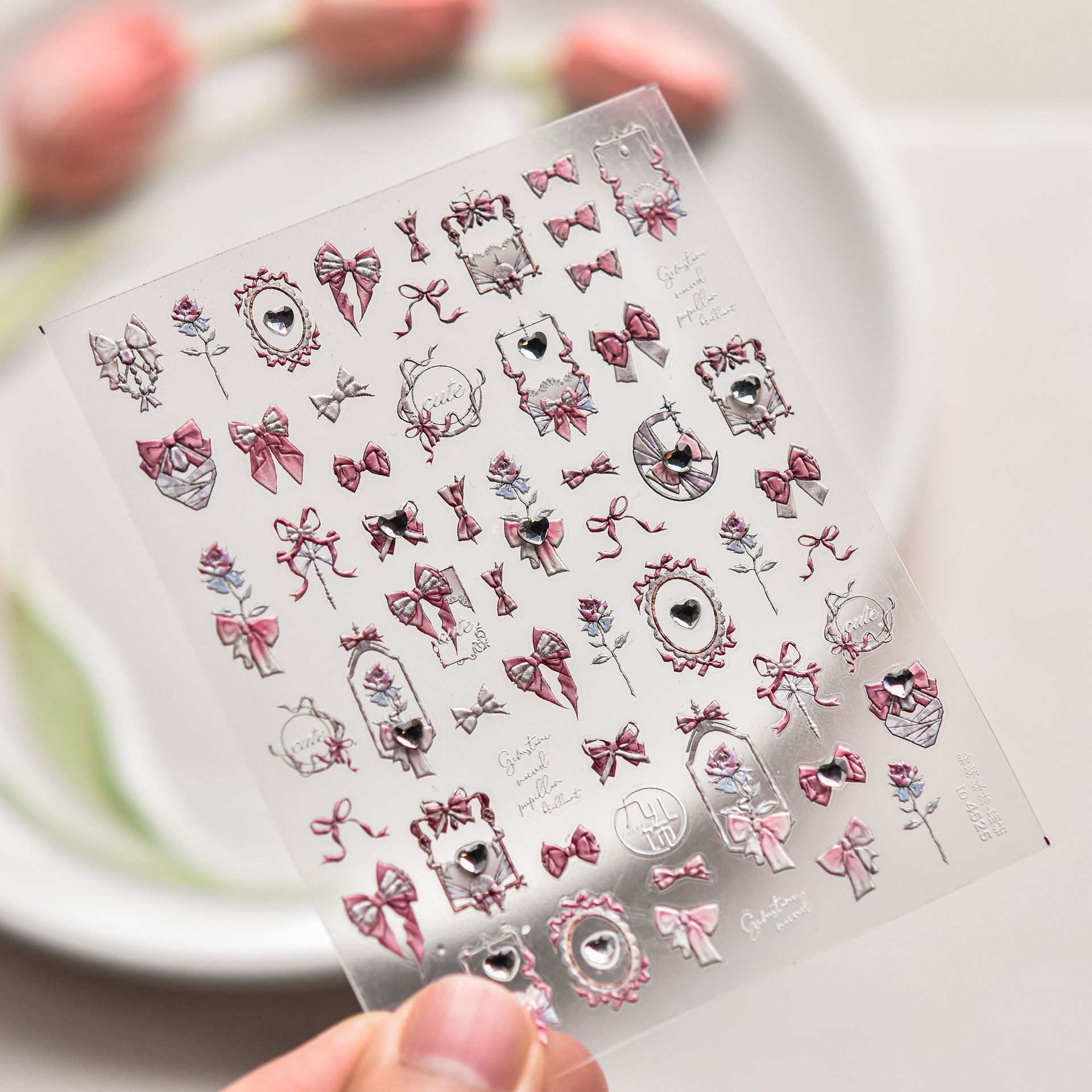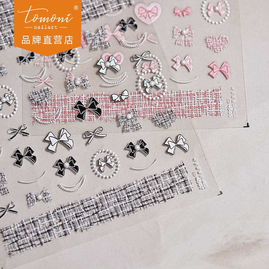 Tomoni金属ネイルシール日系ins爪に手作りいちごリボン補助アクセサリーを貼る