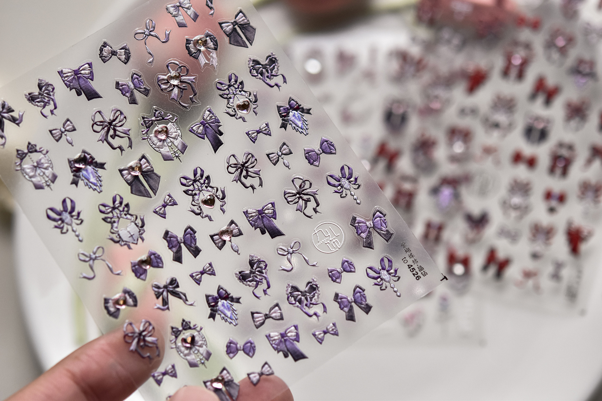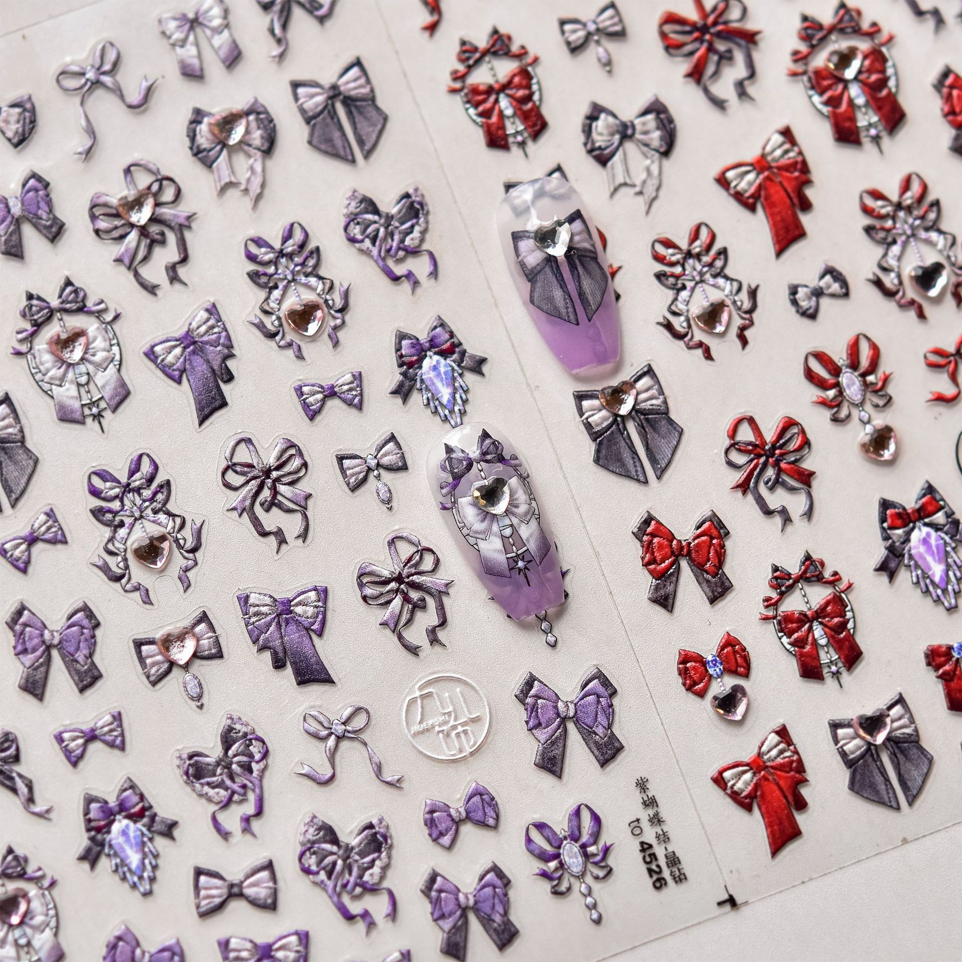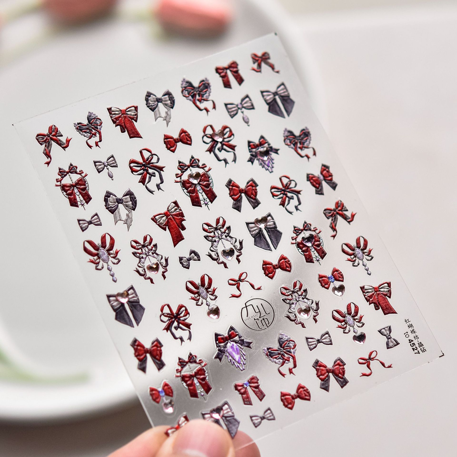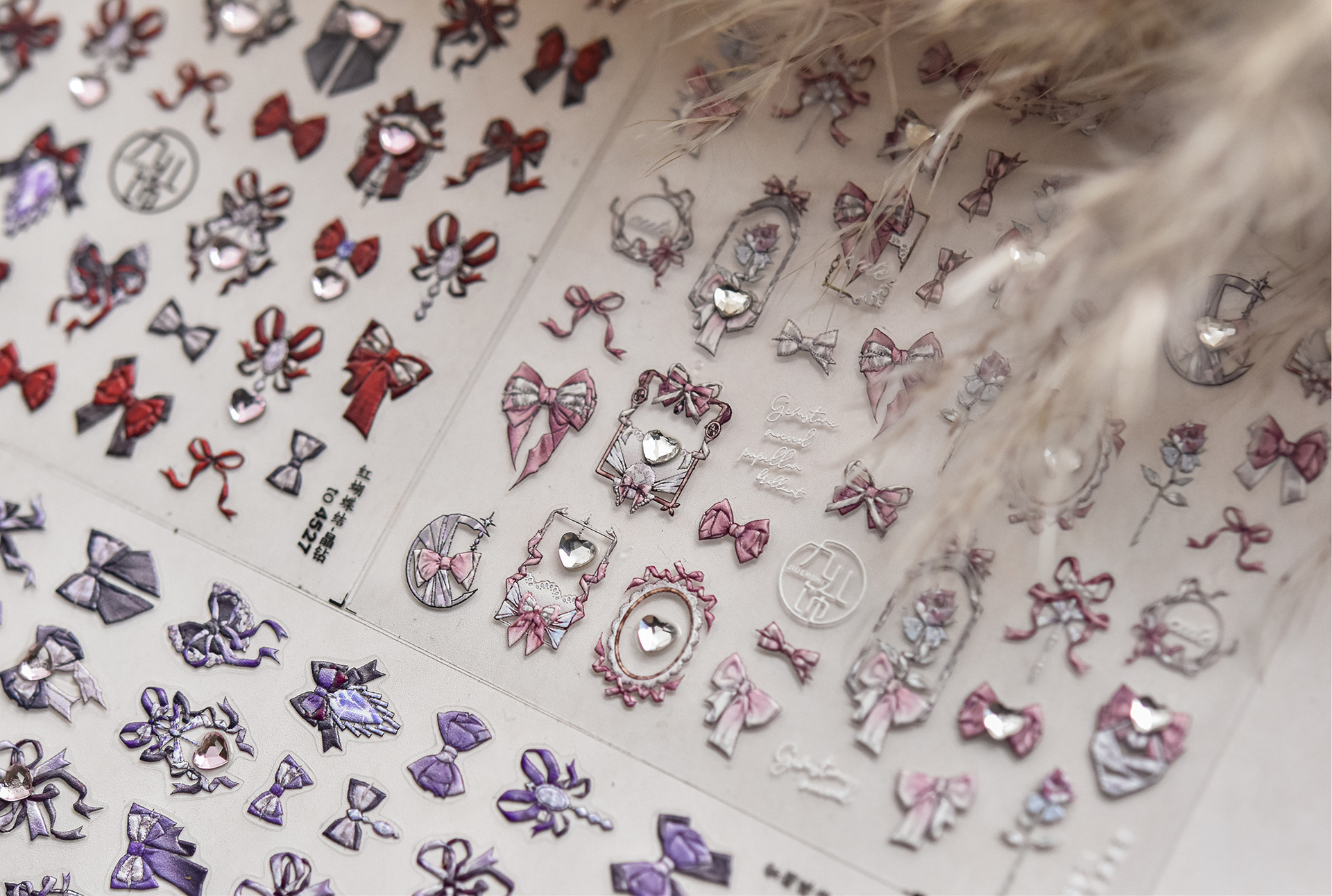 Tomoni金属ネイルシール日系ins爪に手作りいちごリボン補助アクセサリーを貼る