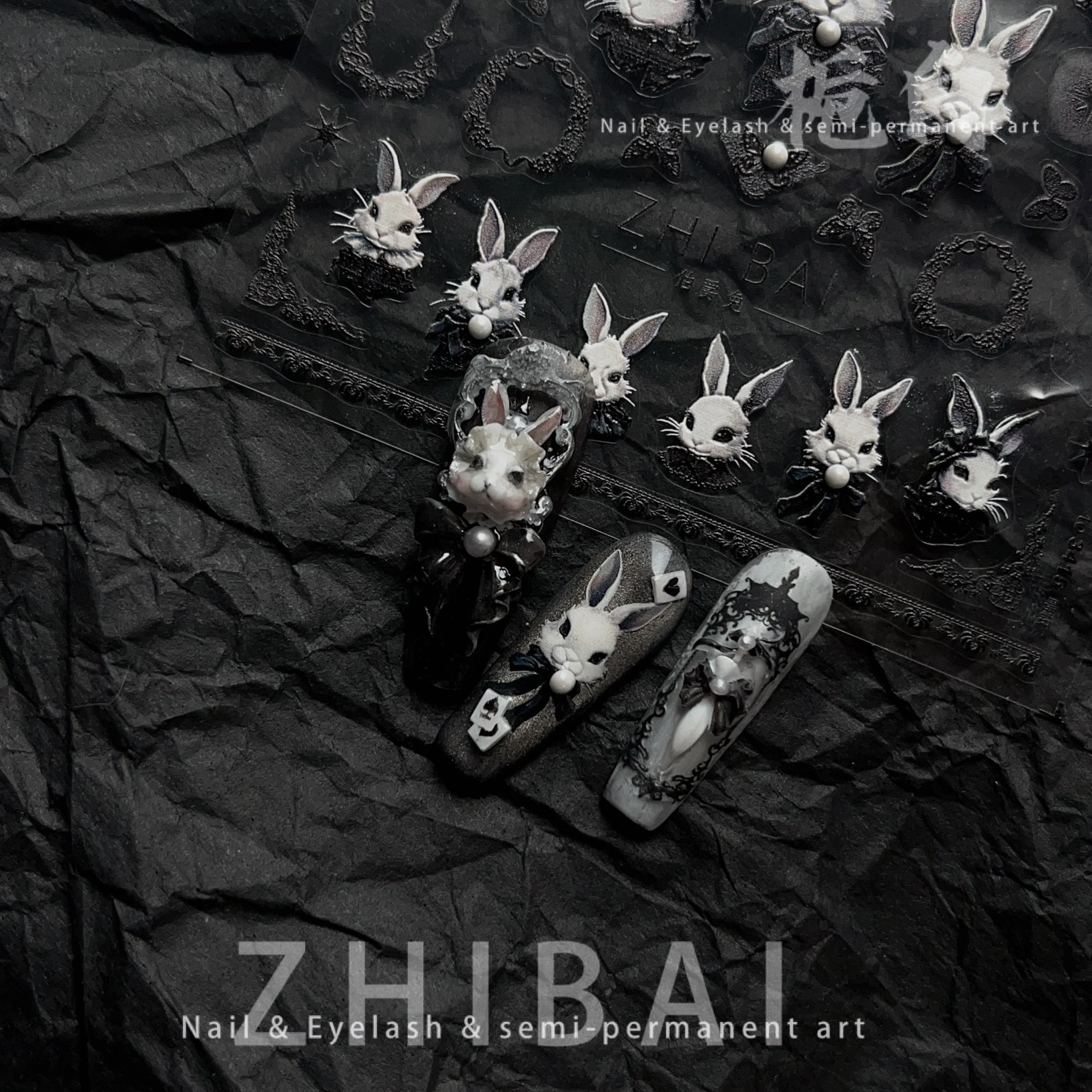 Tomoniレリーフネイルステッカー爆型日系5d爪ステッカー暗黒アリスウサギネイルアクセサリー卸売り