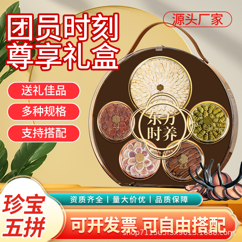 东方时养五拼礼盒西洋参红参铁皮石斛鹿茸灵芝多拼高档送礼礼盒