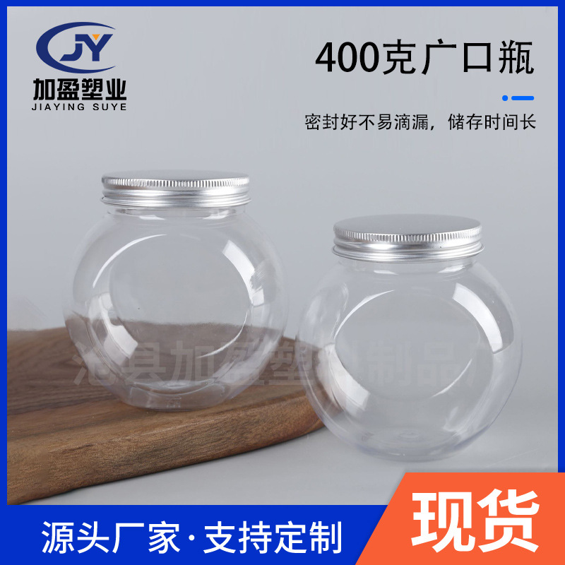 アルミ蓋ペットボトル 62 口ラウンド透明プラスチック瓶雑穀特殊形状砂糖漬けナッツボトル 400 グラム広口ボトル