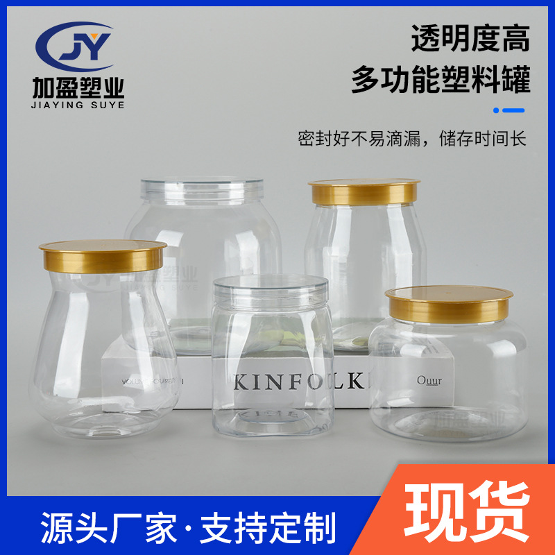 メーカー卸売りpetペットボトル包装密封缶食品缶透明蓋付き広口ナッツ分注瓶