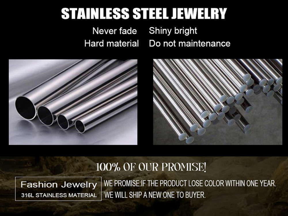 注意:产品采用不锈钢制作,抛光,不只是电镀,不用担心会掉色,洗澡时也不用取下