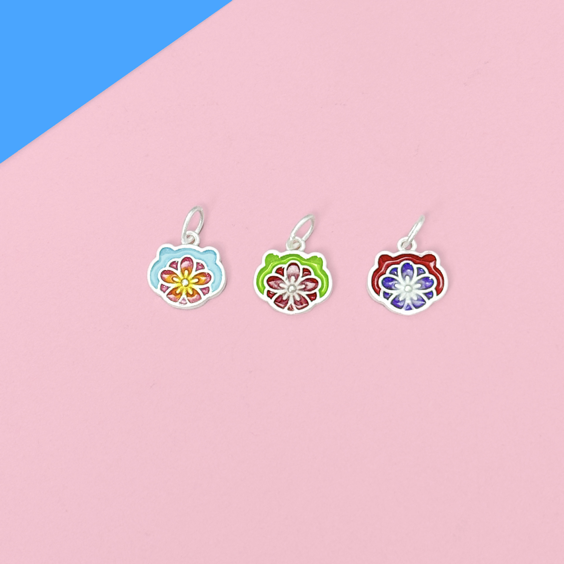 S999足銀滴ゴム三色花ペンダント国風ペンダントdiyブレスレットネックレス数珠銀飾りロープアクセサリー