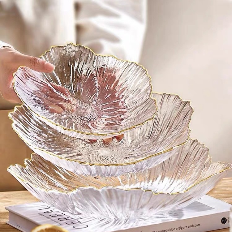 軽くて豪華な高級フルーツプレートクリスタルガラスリビングルームコーヒーテーブル家庭用スナックディスプレイフラワープレート