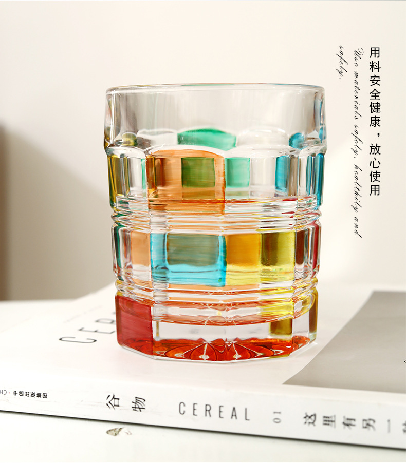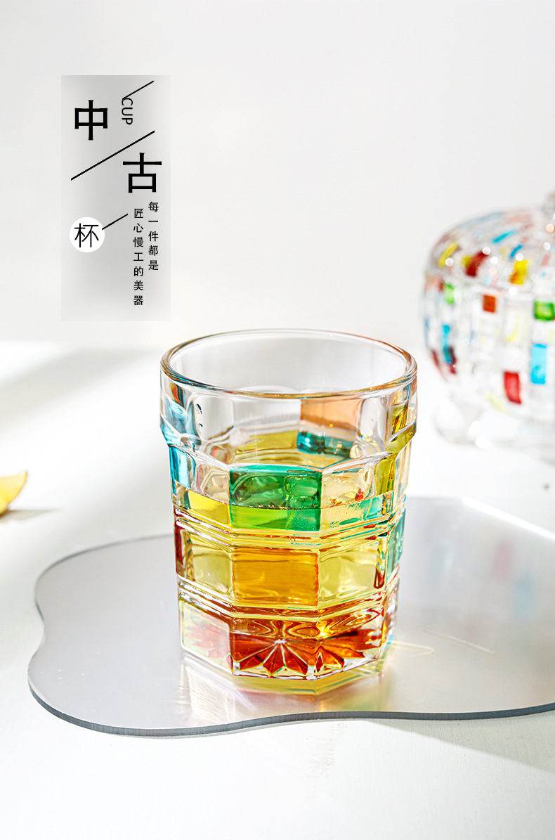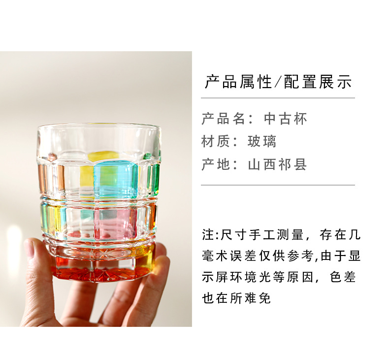 クリエイティブレトロ彩色中古カップ冷たい飲み物カップ高颜値家庭用カップウイスキーカップins風グラス