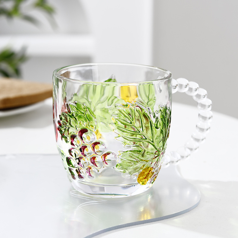Ins風取っ手百果田園彩絵水杯ミルクティージュースカップ牛乳朝食カップ