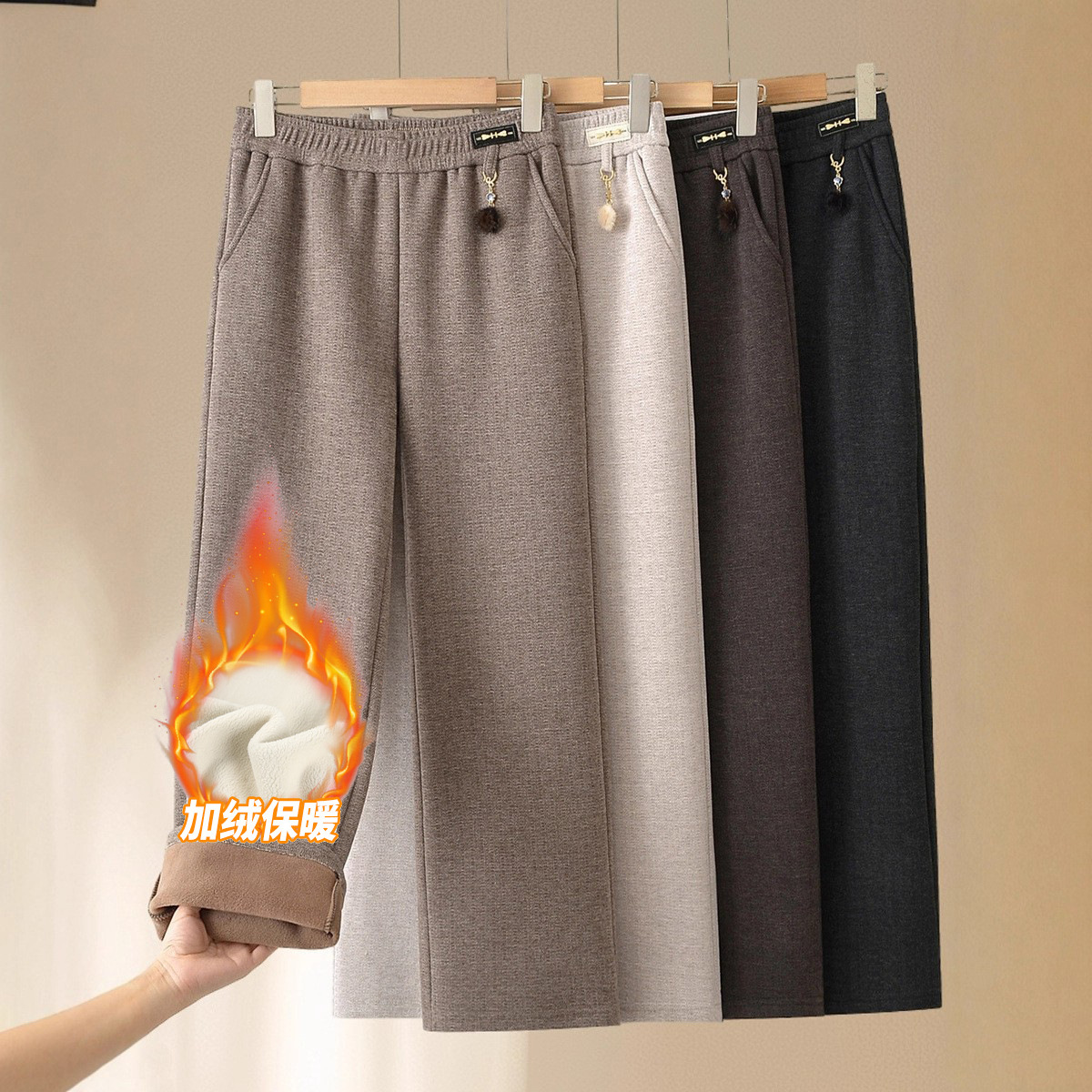 妈妈裤子秋冬休闲直筒长裤中老年人女裤奶奶新冬季加绒加厚卫裤