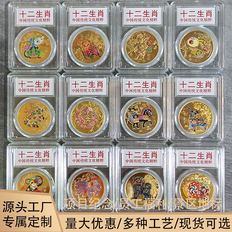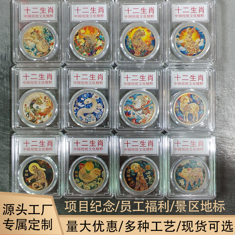 12生肖纪念币评级盒彩色中国风油墨十二生肖纪念章金属工艺品礼品