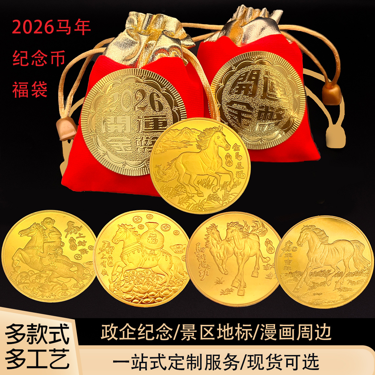 2026马年送福纪念章马到成功开运福袋红布袋礼品马上有钱纪念金币
