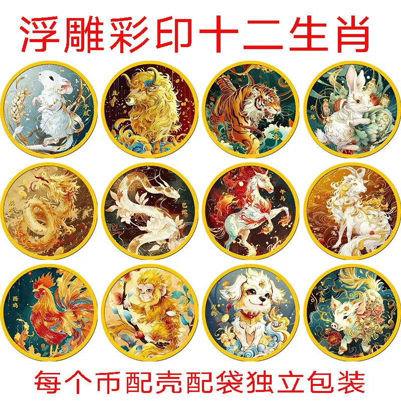 カラー十二生肖記念貨幣12生肖彫刻彩印記念章観光地区博物館生肖プレゼント