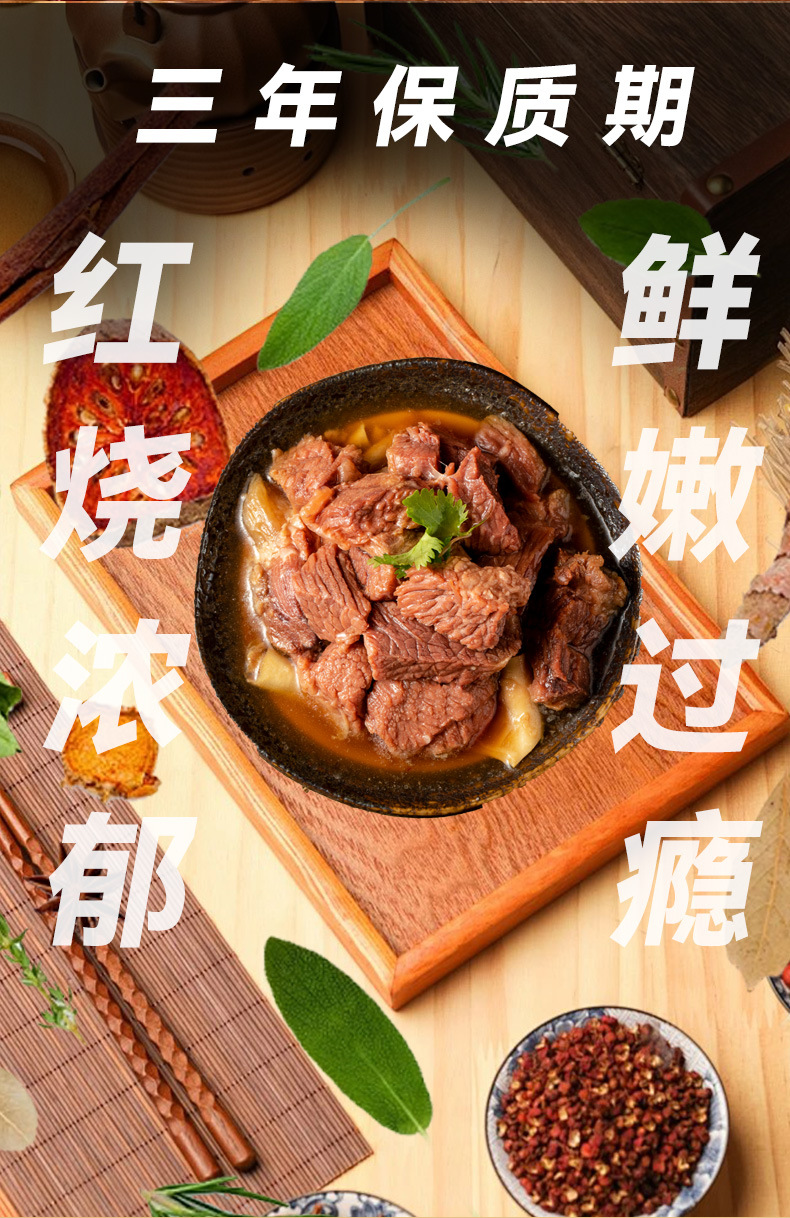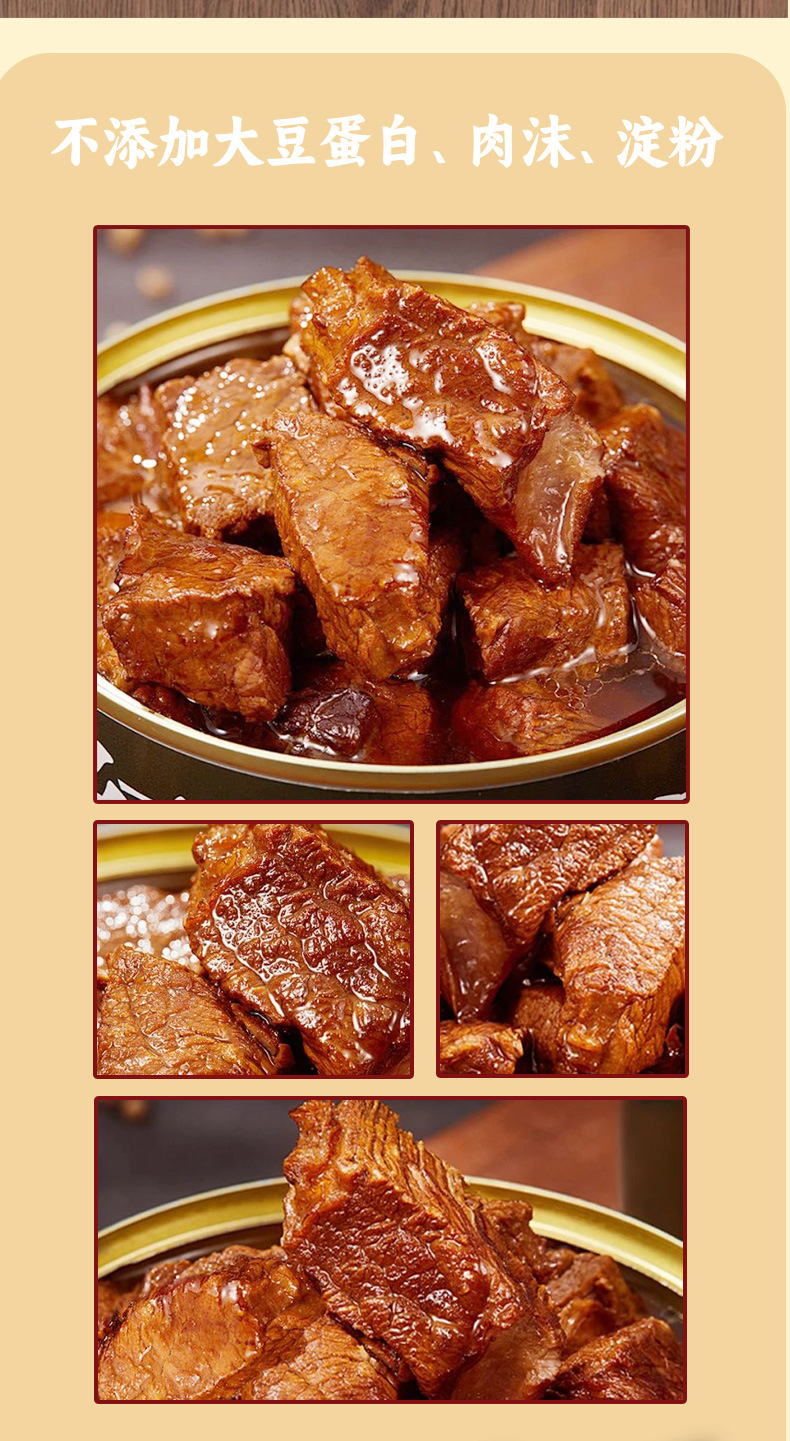 凌翔248g煮込み牛肉缶詰、柔らかく大きな肉塊、ソース風味牛肉、開封即食、便利な牛肉缶詰